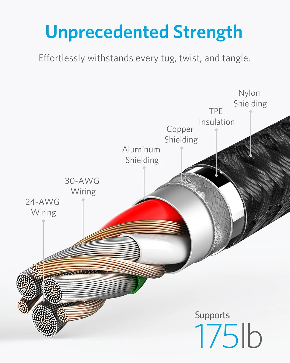Resiste cualquier torsión, tirón y enredo con fibra de nailon trenzada de primera calidad.