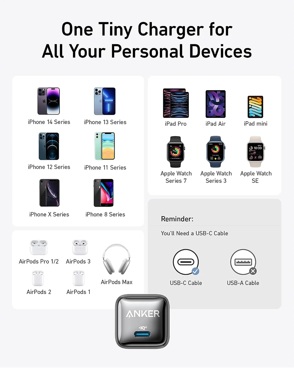 Comprar Anker-cargador 511 Nano Pro USB C, 20W, PIQ 3,0, duradero, compacto, rápido, para iPhone 15/15 Plus/15 Pro/15 Pro Max /Galaxy