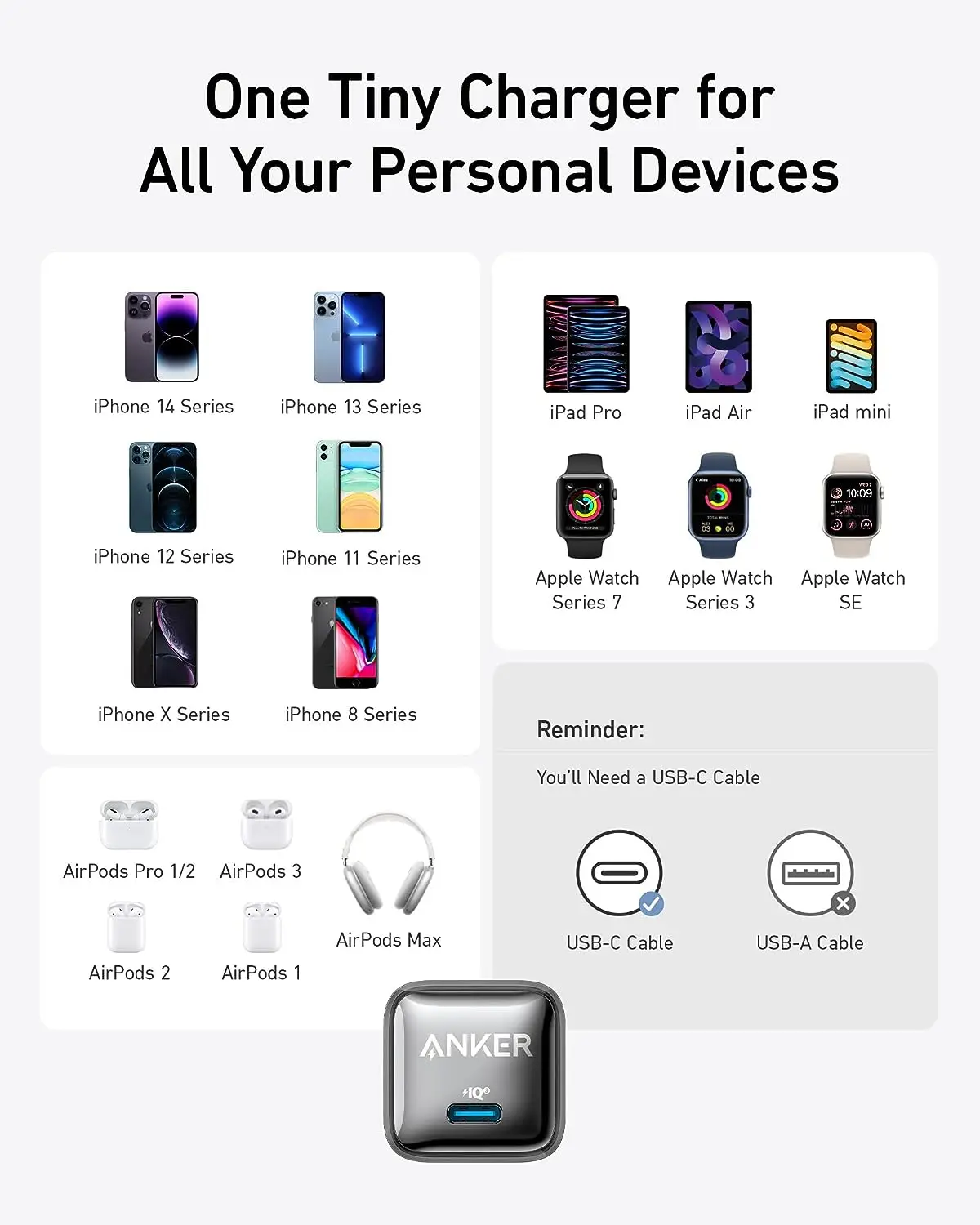Comprar Anker-cargador 511 Nano Pro USB C, 20W, PIQ 3,0, duradero, compacto, rápido, para iPhone 15/15 Plus/15 Pro/15 Pro Max /Galaxy