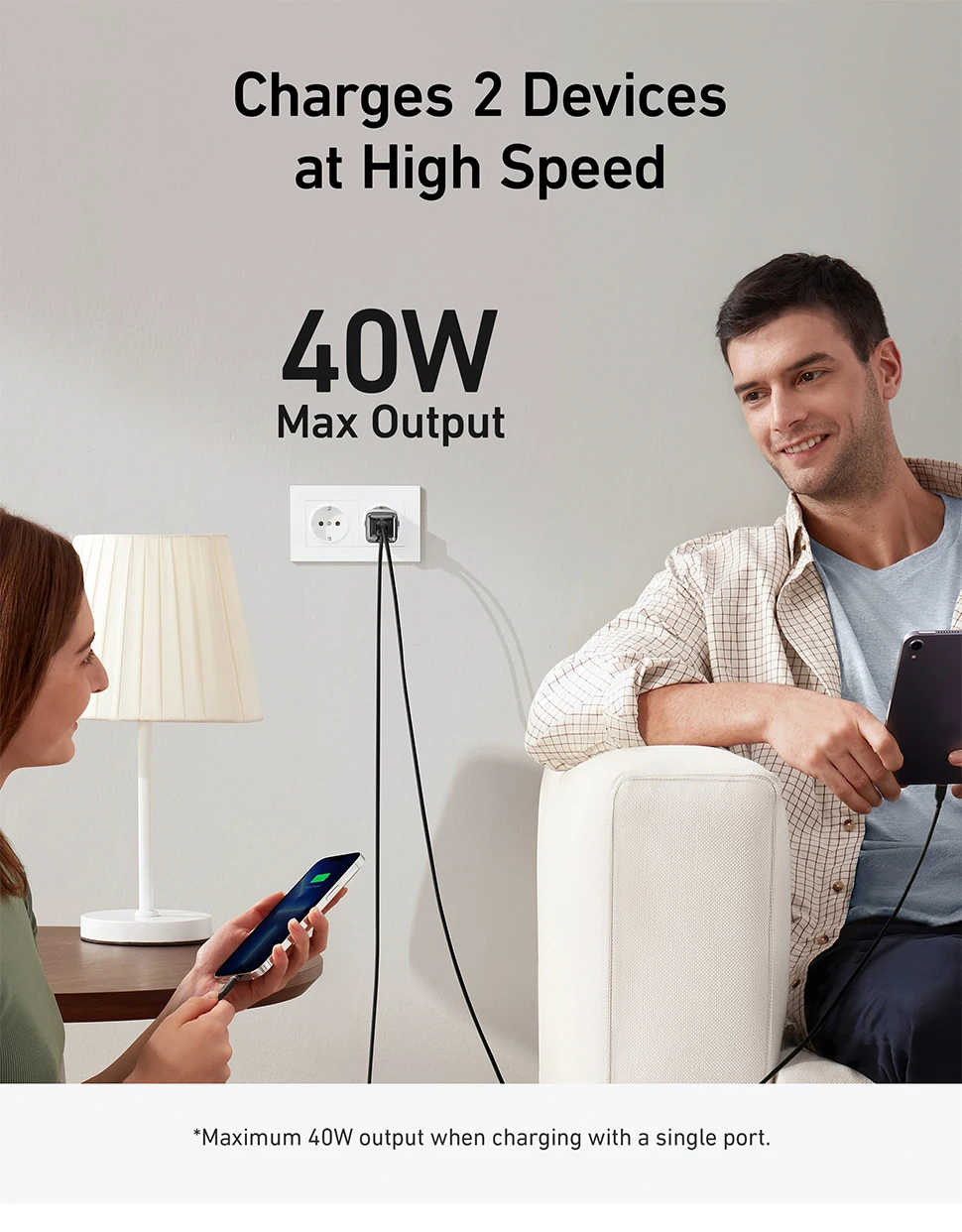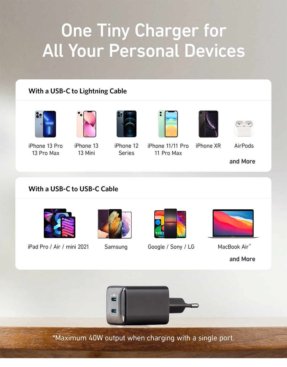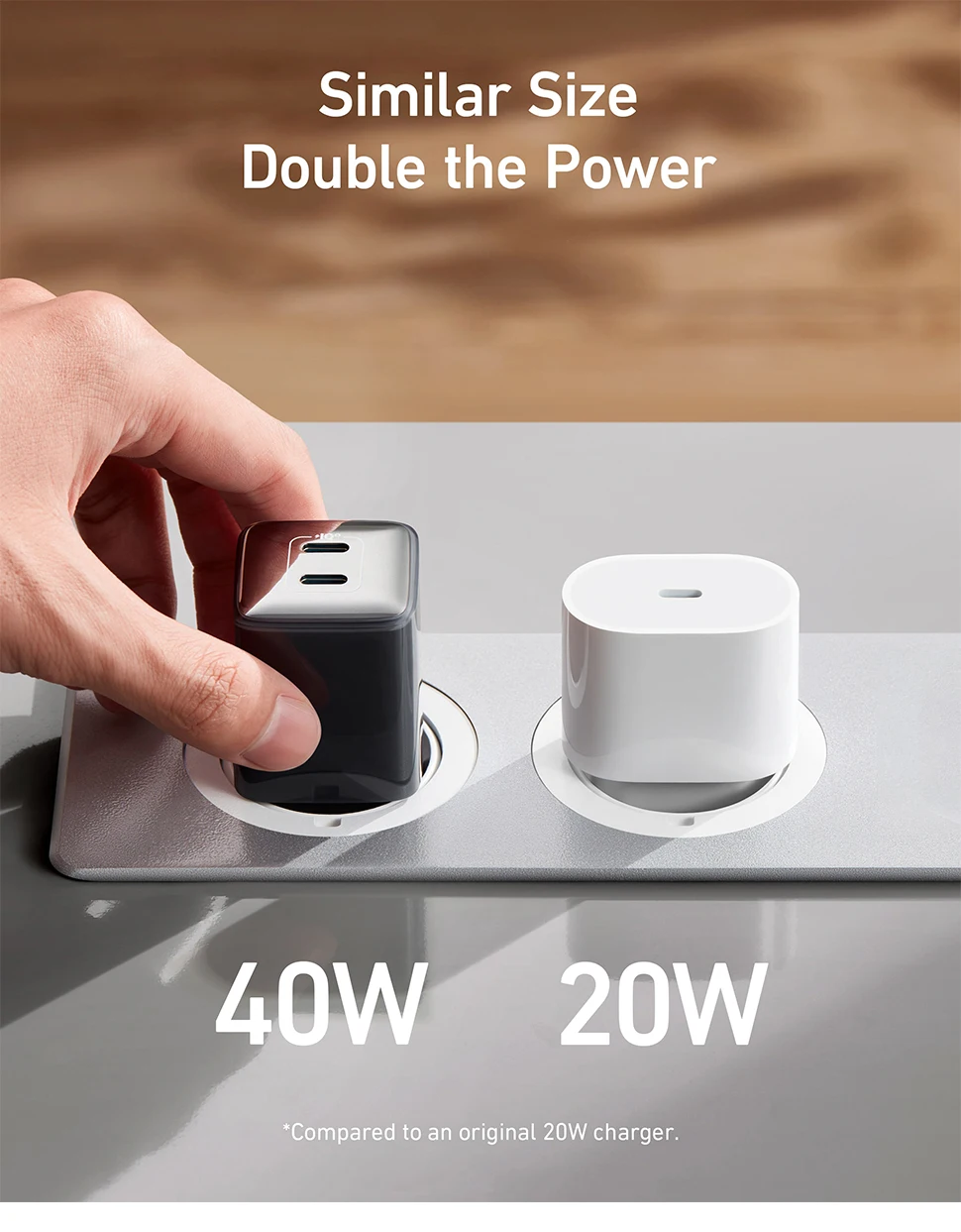 Carga hasta 40W con un cargador que es más pequeño que tus AirPods Pro.