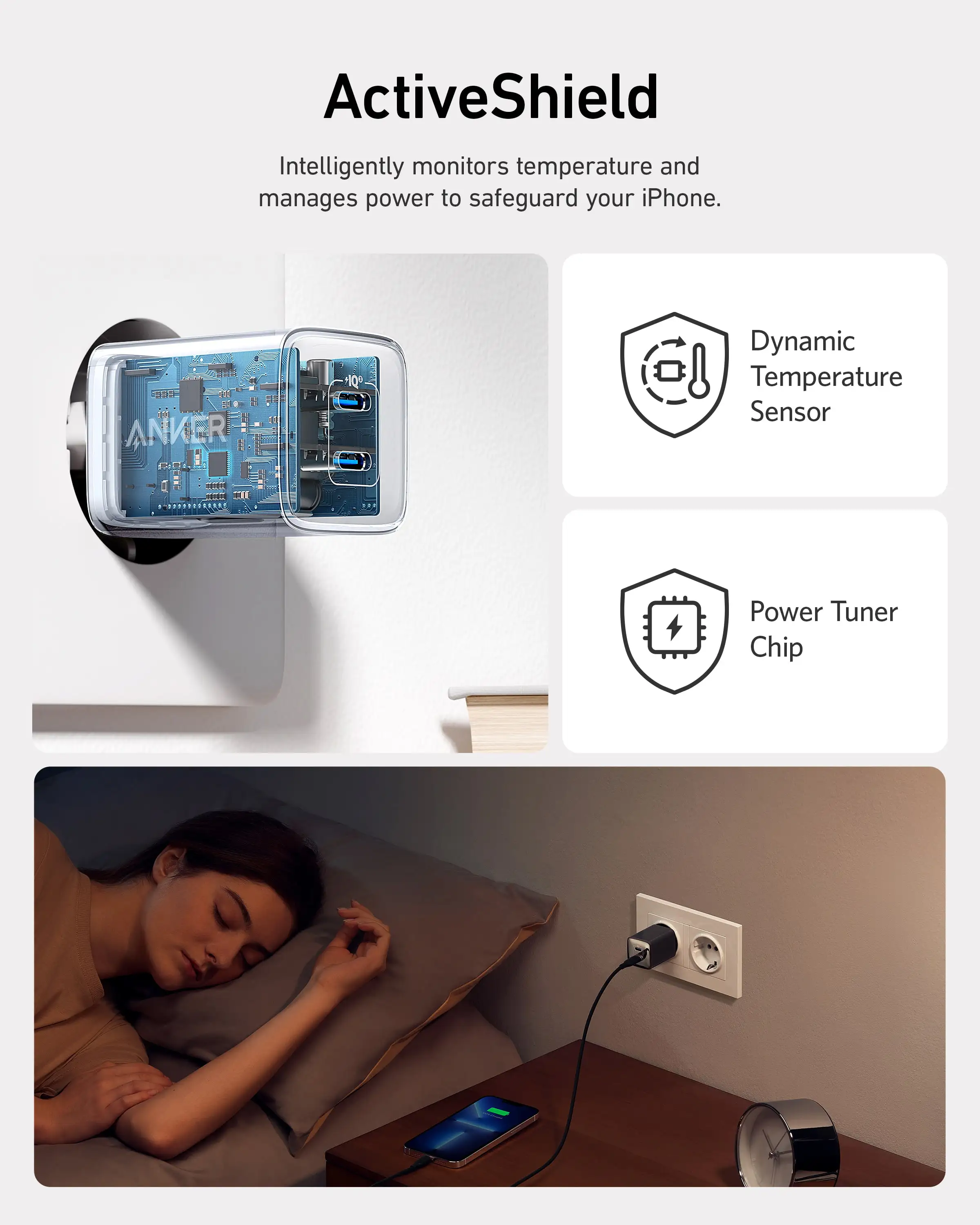 Comprar Anker-cargador de teléfono móvil 521, dispositivo de carga rápida de 40W, Nano Pro, USB C, PIQ 3,0, duradero, tipo C, para iphone 14/14 pro y Galaxy