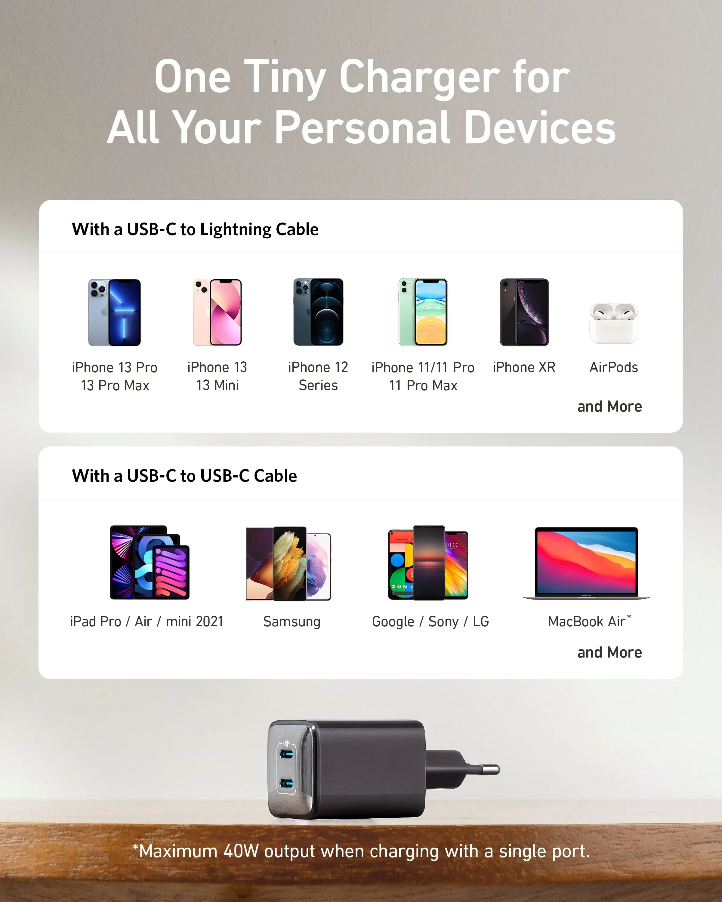 Carga hasta 40W con un cargador que es más pequeño que tus AirPods Pro.