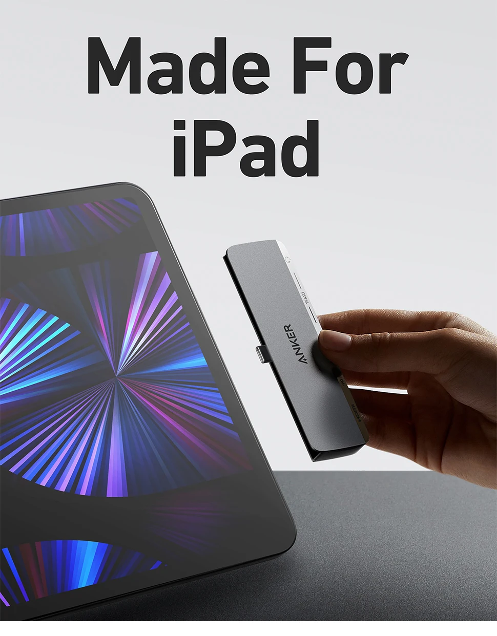 Diseñado específicamente para combinar con el estilo y las dimensiones de tu iPad. Simplemente conéctalo para actualizar instantáneamente tu conectividad.