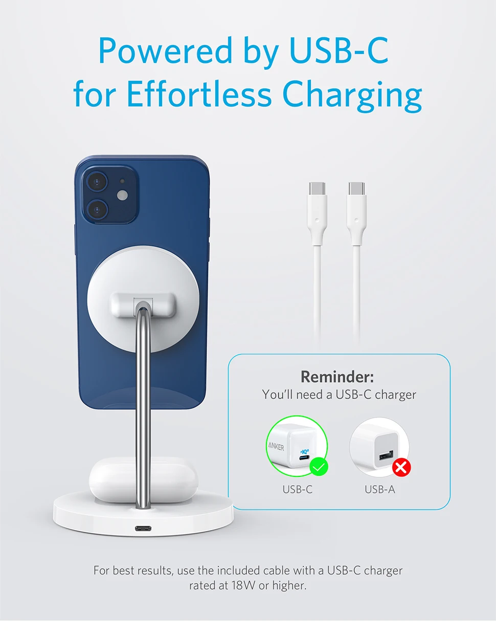 Comprar Anker-soporte magnético inalámbrico PowerWave 2 en 1, soporte de carga con Cable de USB-C, para iPhone 14/Pro/Plus y AirPods 2/Pro