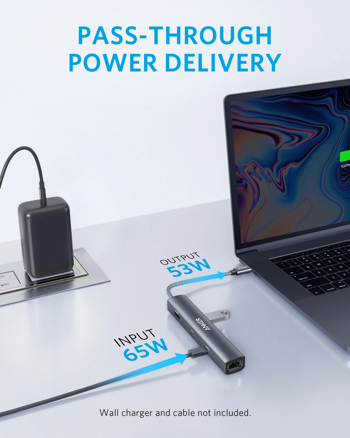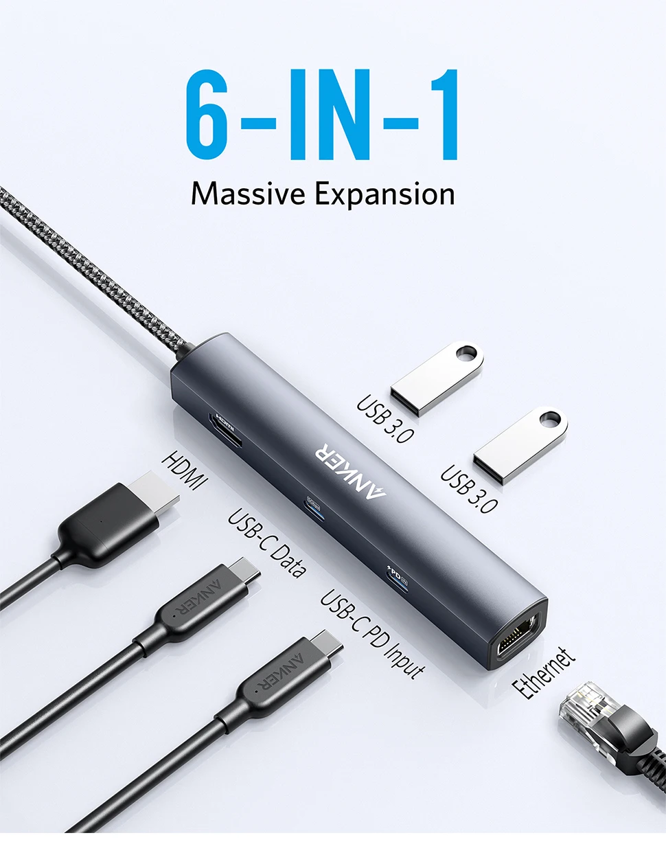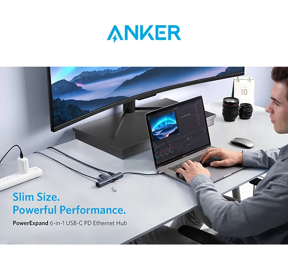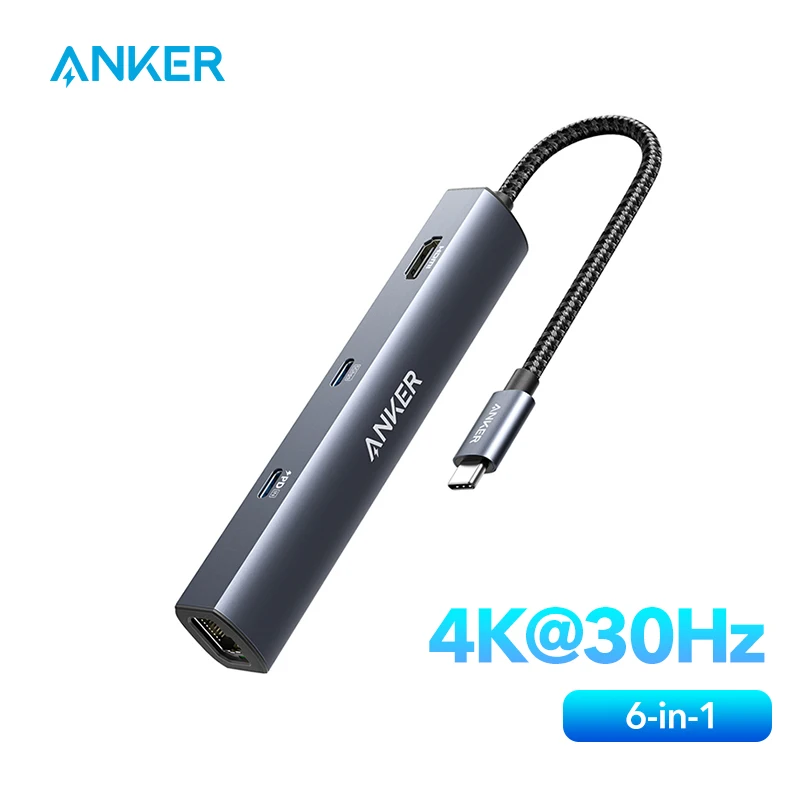 Comprar Anker USB C Hub, PowerExpand 6 en 1 USB C PD Ethernet Hub con entrega de energía de 65 W, HDMI 4K, Ethernet de 1 Gbps, 2 puertos de datos USB 3.0