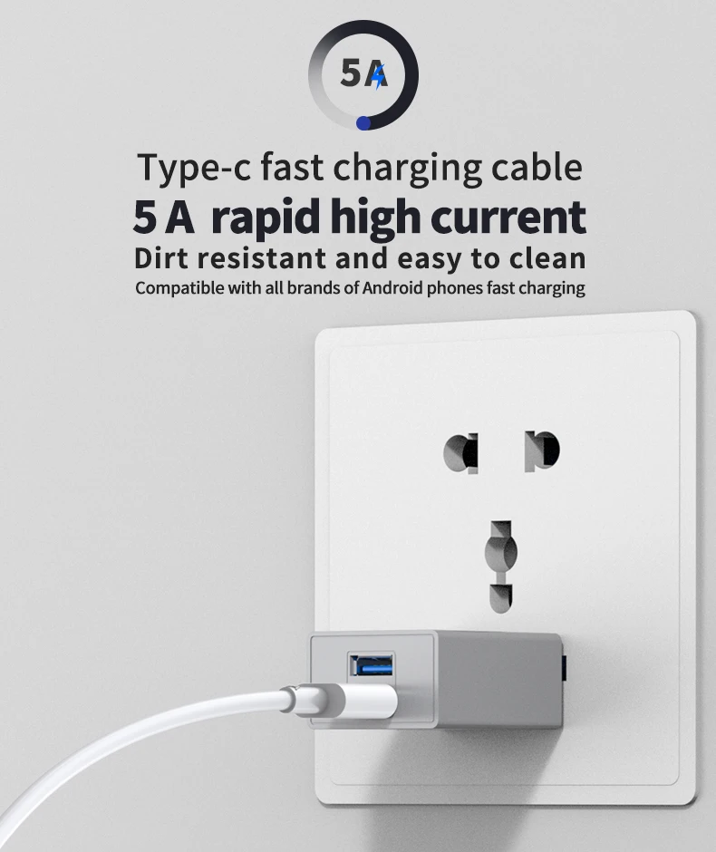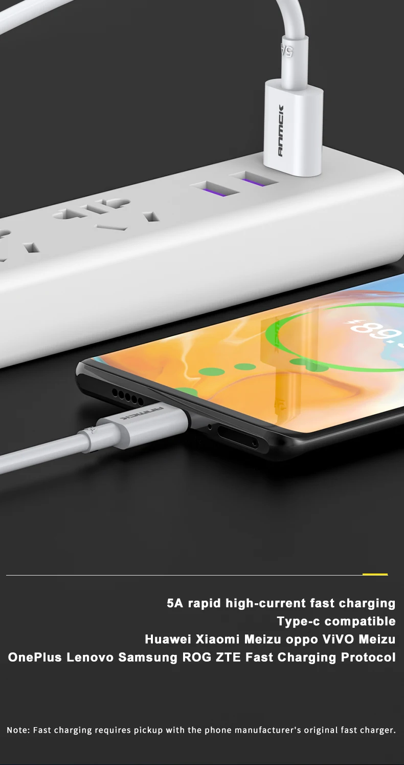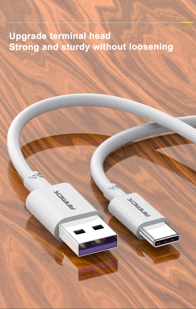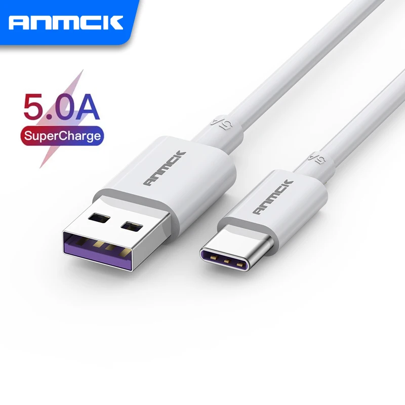 Comprar Anmck 5A Cable USB tipo C cargador rápido Cable de carga de teléfono móvil Cable blanco para huawei P20 Mate 10 Cable de datos USB C 1m 2m 3m