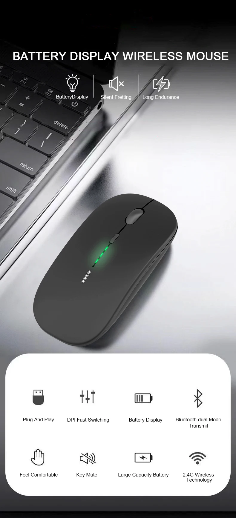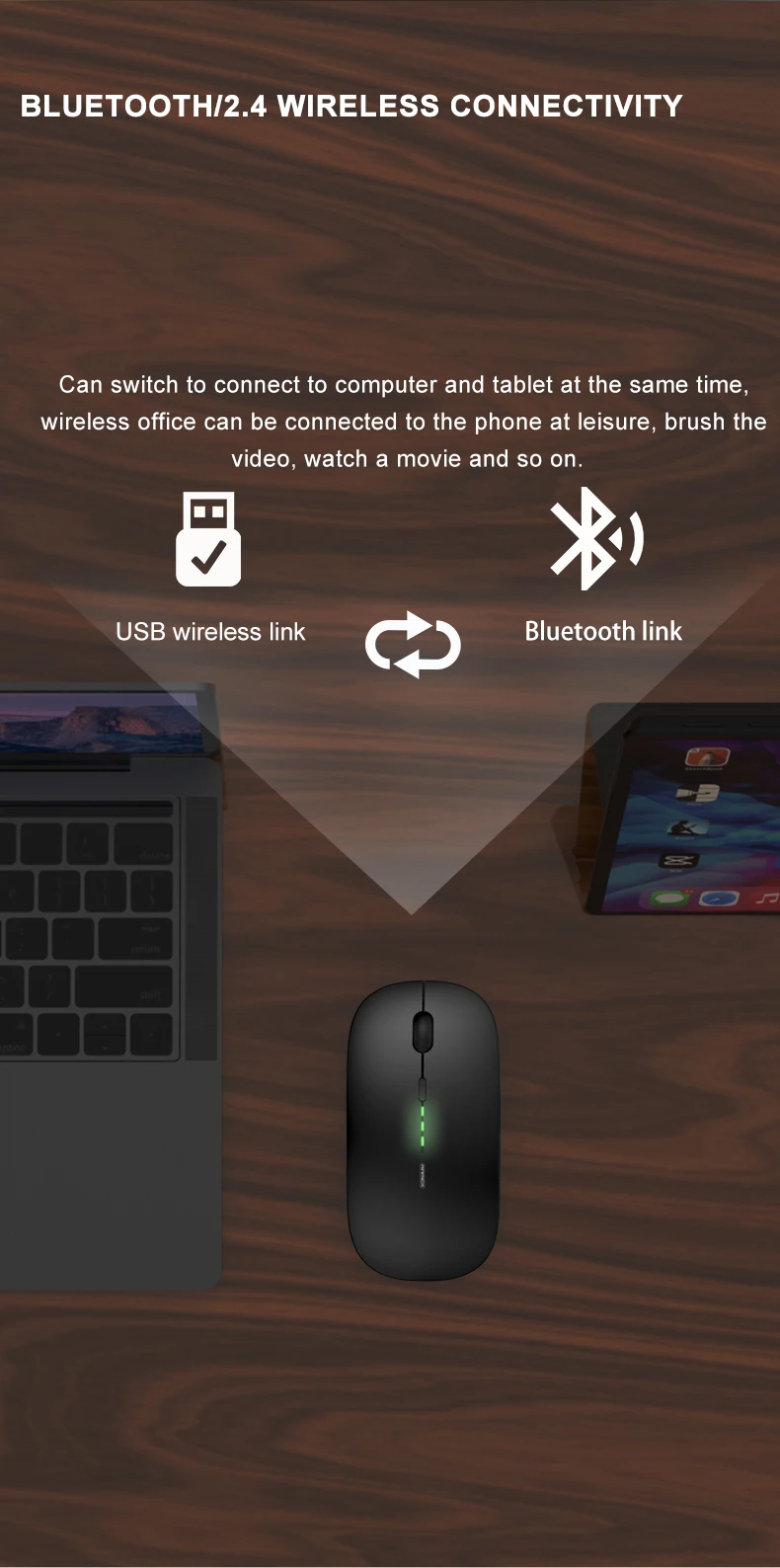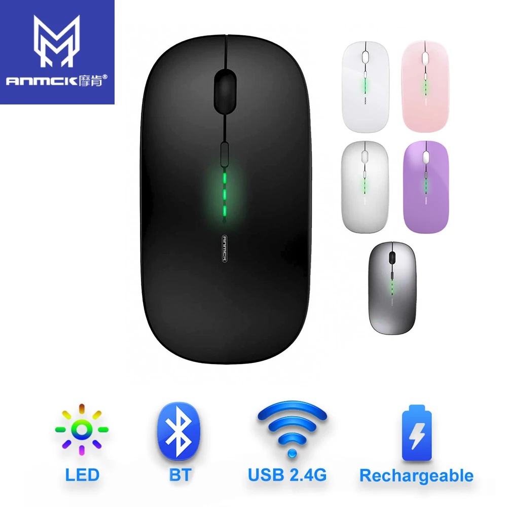 Comprar Anmck Bluetooth ratón silencioso inalámbrico para ordenador recargable Mini Magic 2,4G USB ratón inalámbrico para ordenador portátil ratón