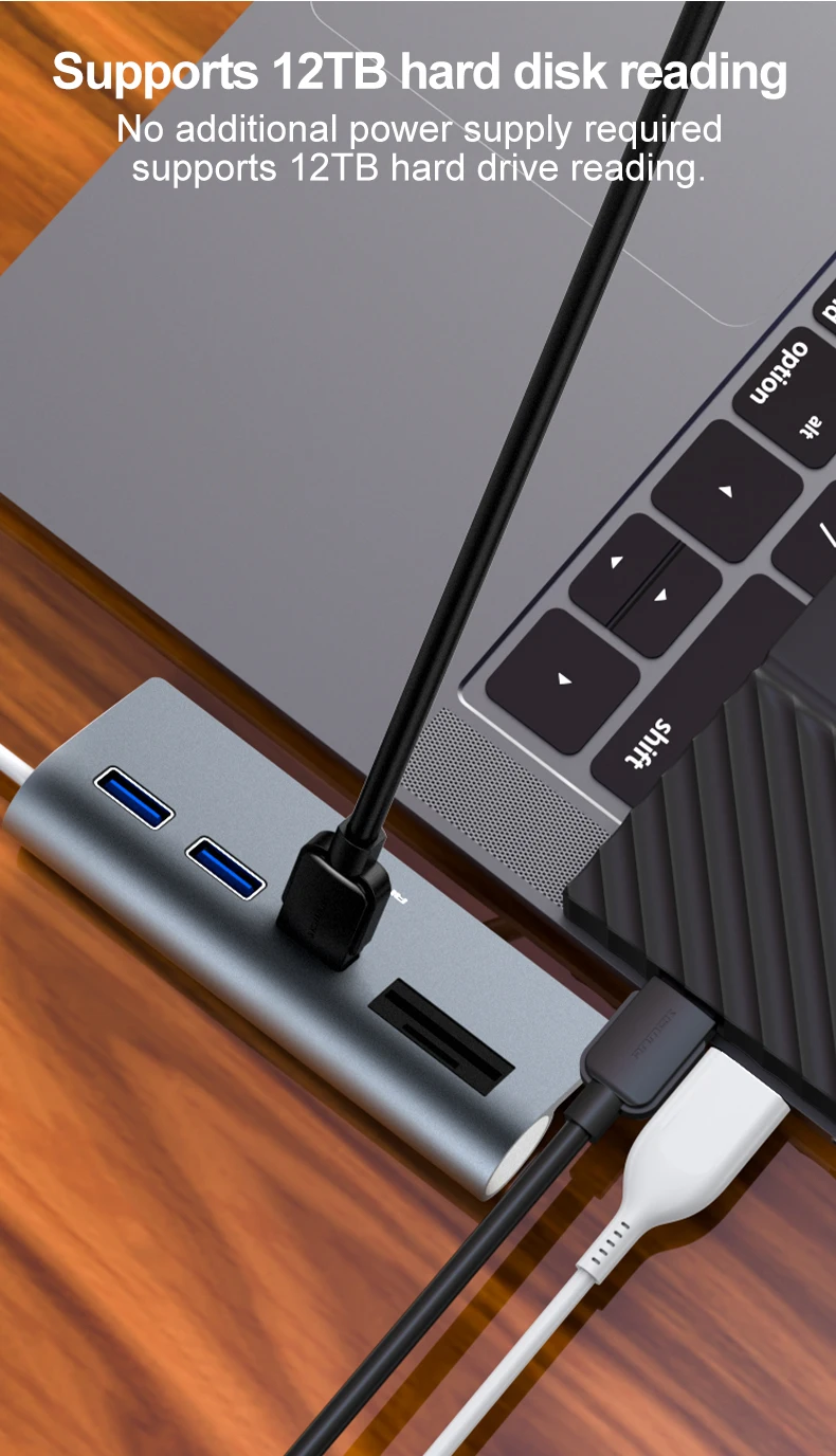 4. Nota: Este Hub admite salida de corriente máxima de hasta 900mA. Por lo tanto, algunos HDD que necesitan corriente de más de 900mA necesitan un adaptador de corriente externo. No están diseñados para cargar dispositivos, se pueden cargar pero lentamente.