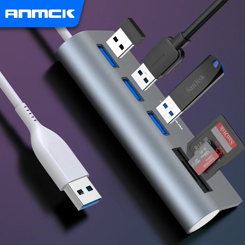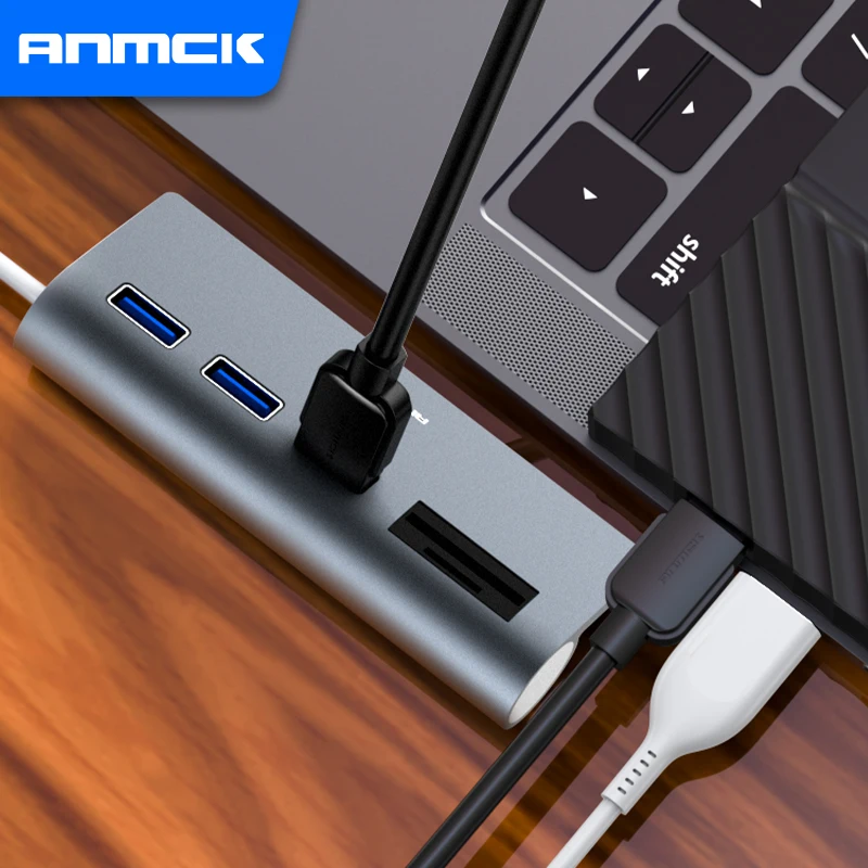Comprar Anmck USB C Hub con lector de tarjetas SD/TF divisor para accesorios de ordenador adaptador USB 5 puertos USB 2,0 Hub para portátiles Mac Pro PC
