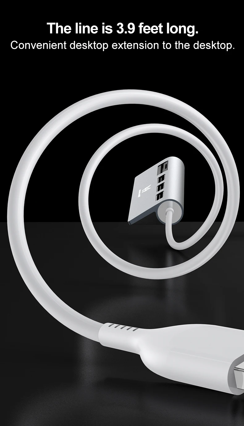 3. Elección de dos modos: Hub divisor USB de extensión de 1,2 m y HUB USB 2,0 de 4 puertos con función de carga inalámbrica