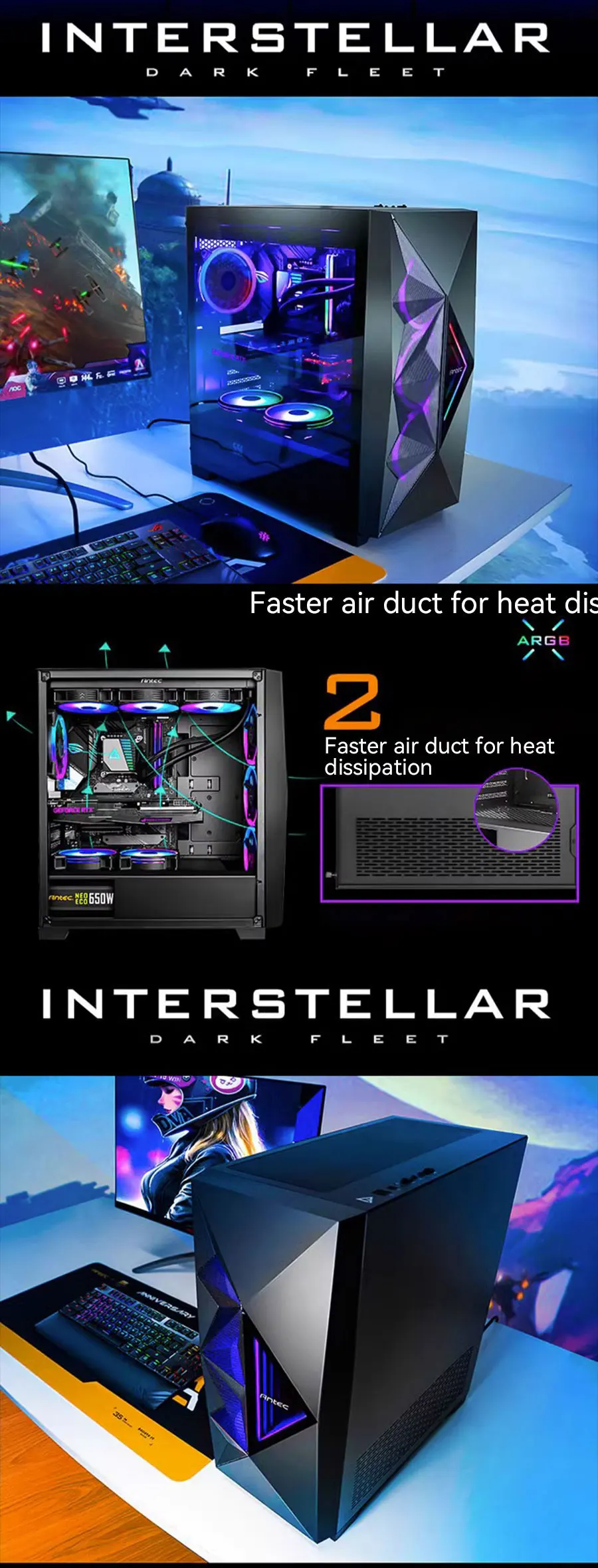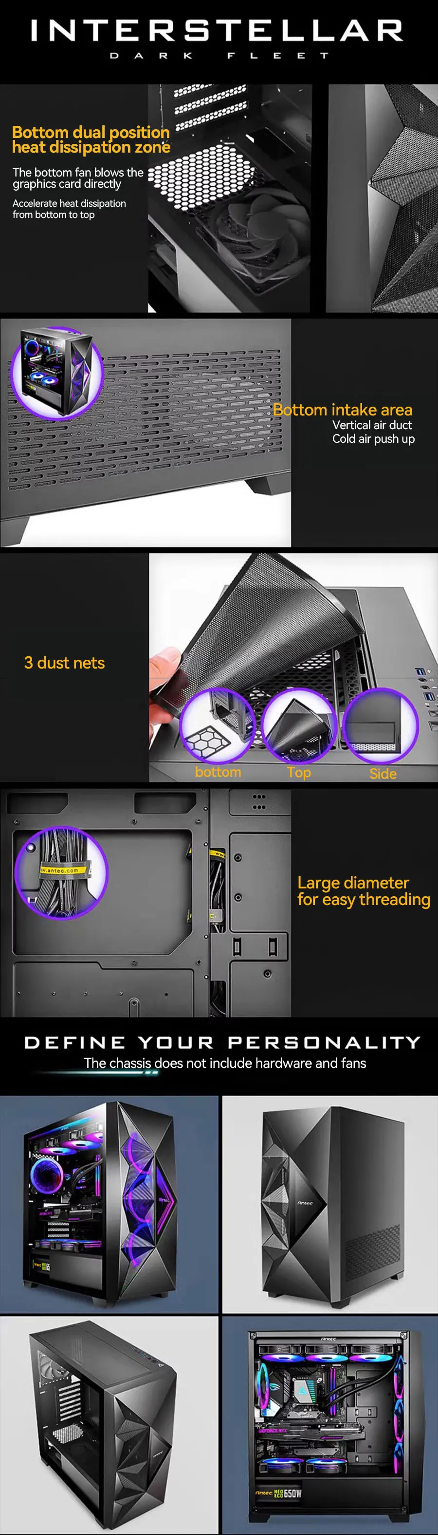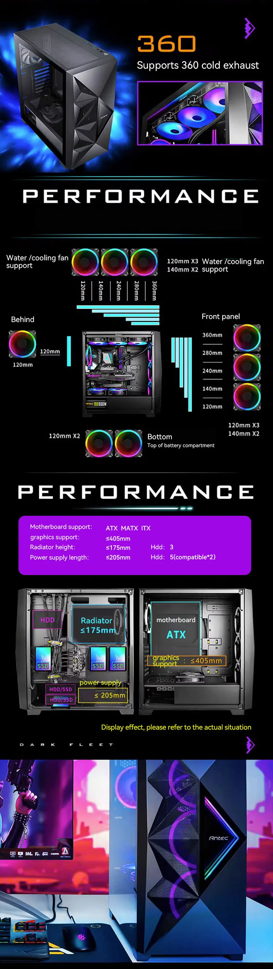 Antec DF800 FLUX Caja de PC Lado de vidrio Translúcido ATX Torre media 360 Lado refrigerado por agua Caja negra transparente para computadora ле bha