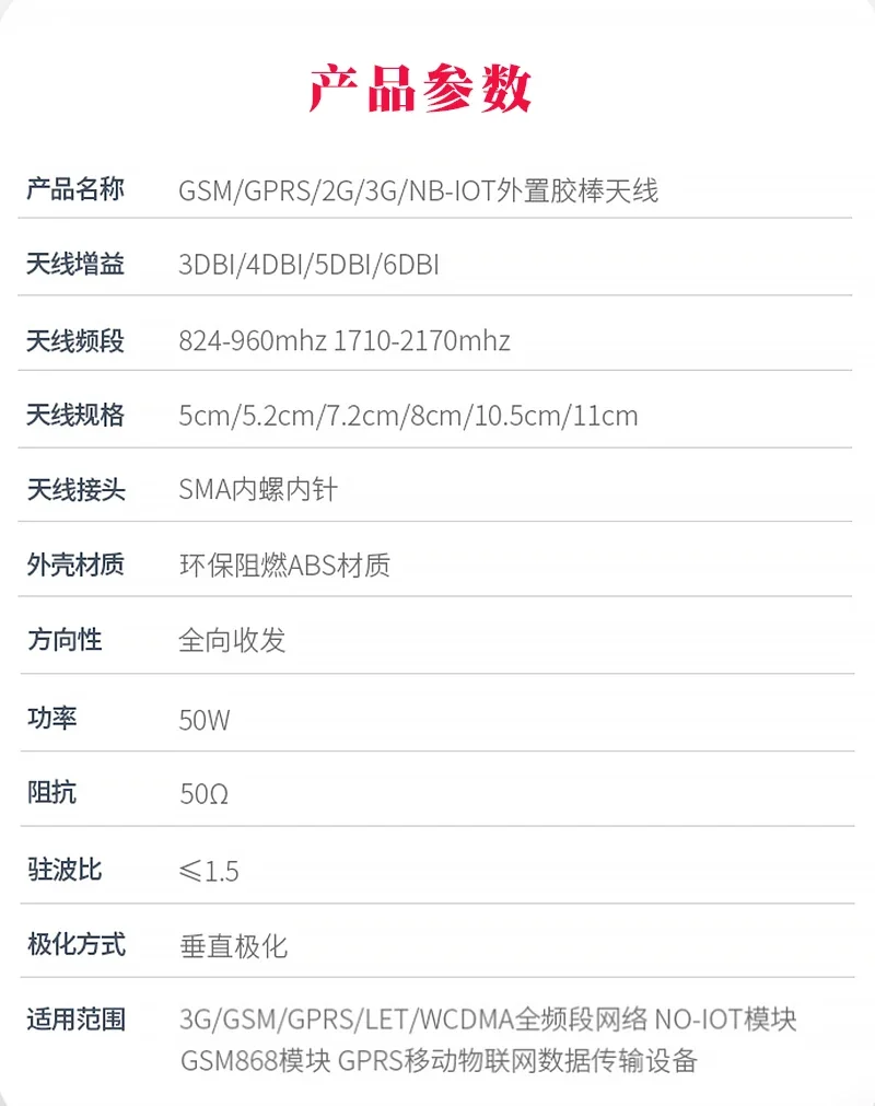 Antena de barra de pegamento SMA, codo plegable, pequeña antena de pimienta, GPRS/GSM, ganancia de banda cuádruple, orificio interior de aguja interior de 3DBI