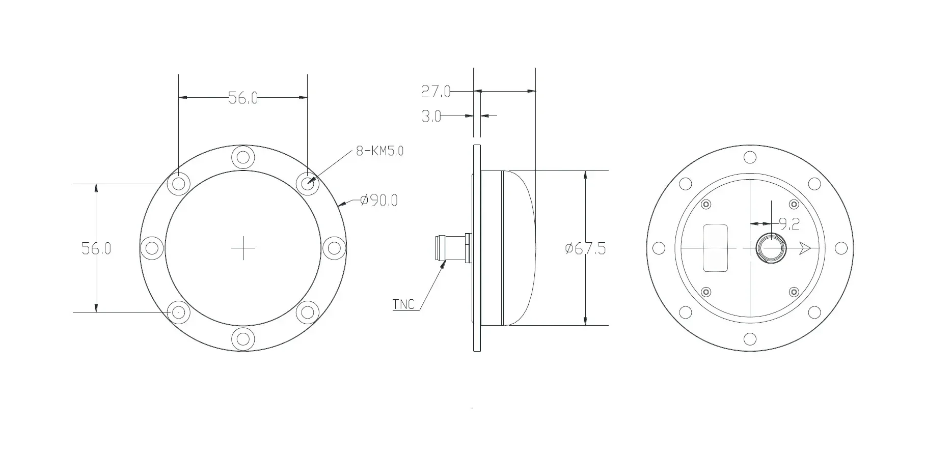 Observación: * 1. La ganancia máxima y la frecuencia con el tamaño del plano de tierra cambiarán. * 2. La ganancia LNA no incluye la pérdida del cable coaxial.