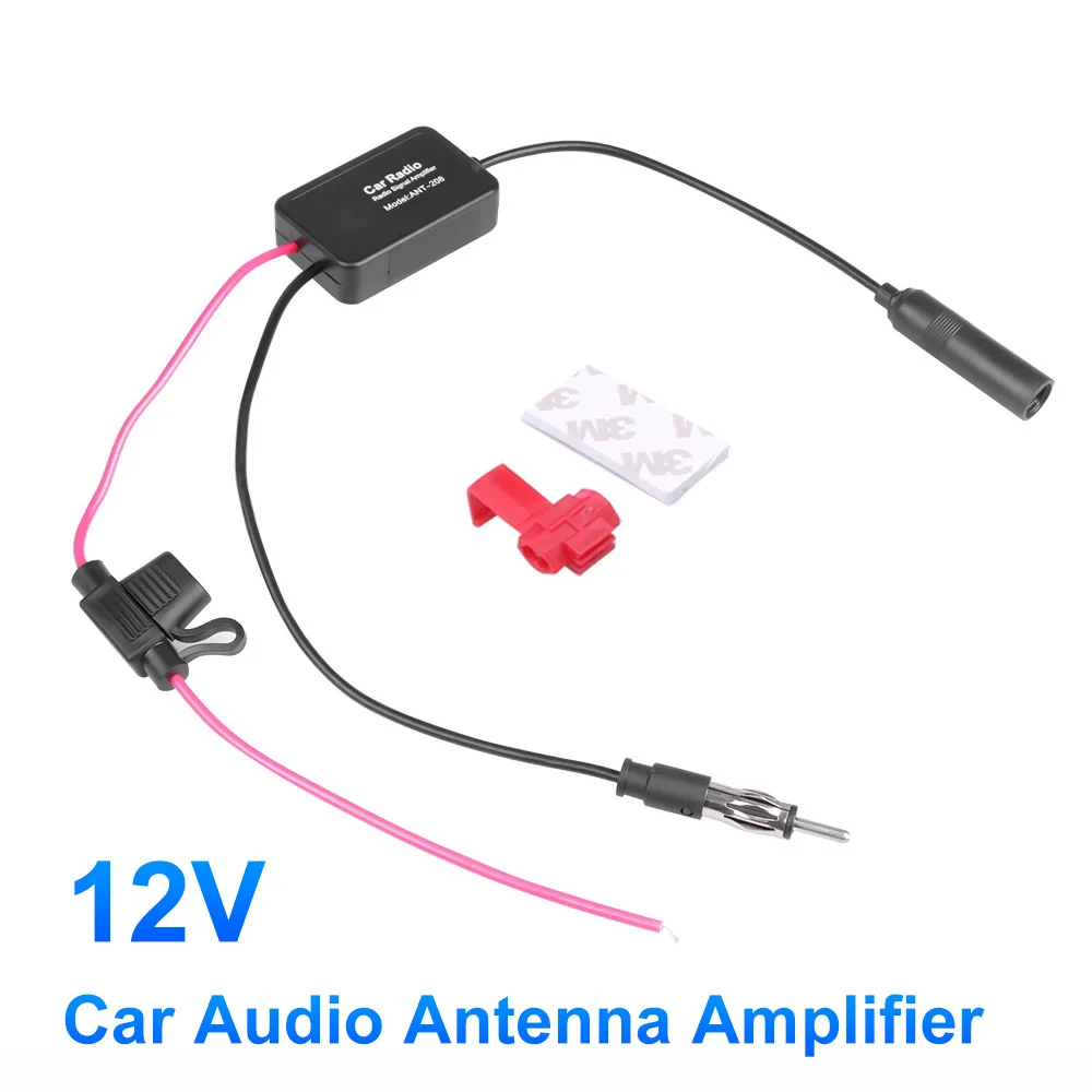 Comprar Antena de coche de 12V, amplificador de señal FM, antena de coche antiinterferencias, amplificador de Radio, amplificador FM de 80-108MHz para barco marino y automóvil