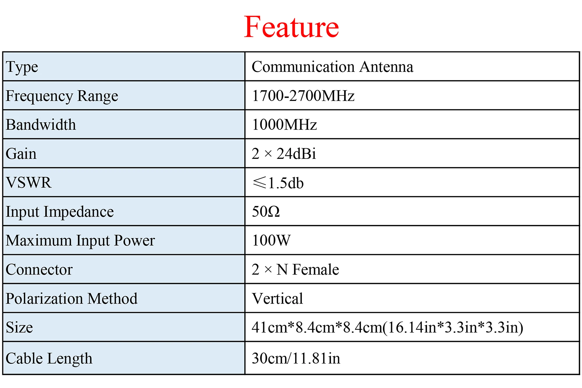 Rango de frecuencia: 1700-2700MHz