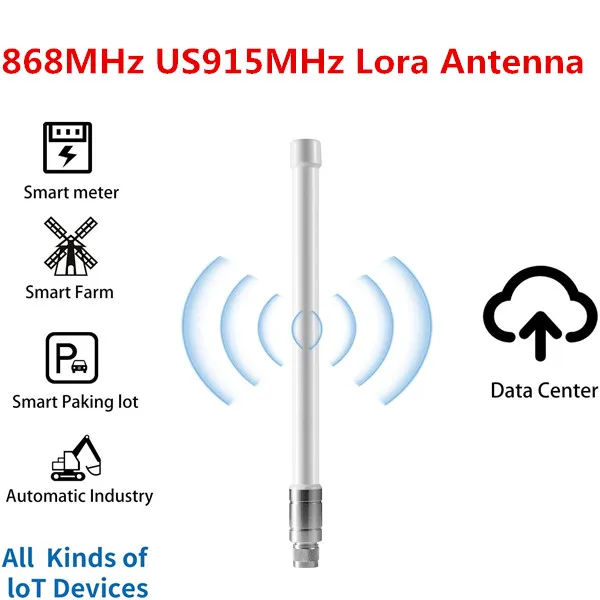 868(858-878MHz)/ 915(902-928MHz) 60CM 5. 8dBi alta ganancia omnidireccional 915mhz 868mhz Antena de fibra de vidrio helio mineros IOT LORA wan módulo antena exterior impermeable N conector macho