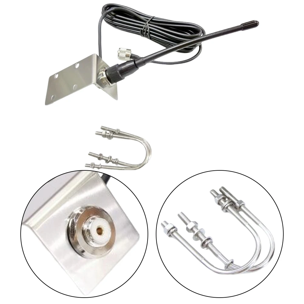 Antena marina VHF de 156-163 Mhz, antena de mástil impermeable de goma con Cable RG-58 de 5M/16,4 pies, soporte en forma de L para barco, velero y y yate