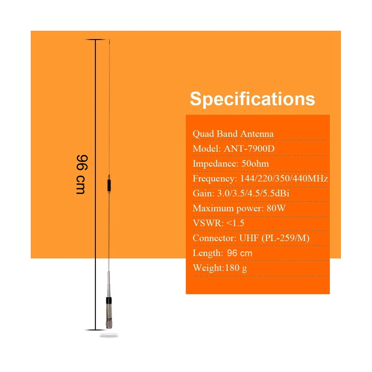 Comprar Antena de Radio móvil de banda cuádruple para QYT, Walkie Talkie, KT-7900D, 144/220/350 MHz, ANT-7900D