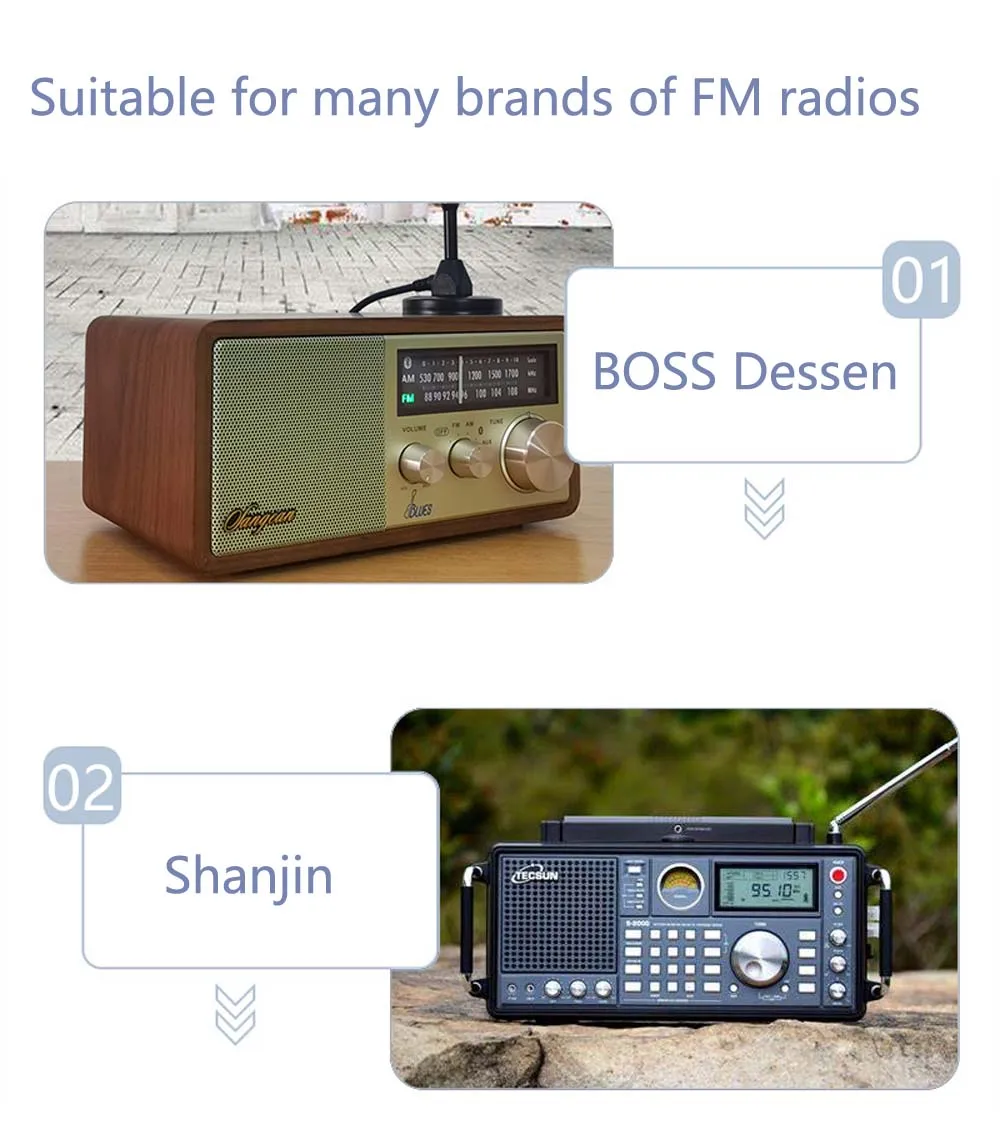 86MHz ~ 109MHz para una variedad de marcas de radios Tenryu, AMBUSH, JVC, Marantz, Yamaha SONY, Panasonic, SHARP, Sharp, BOSS Dickson, Elvis, Shanjin, se puede utilizar, seleccione el conector correcto