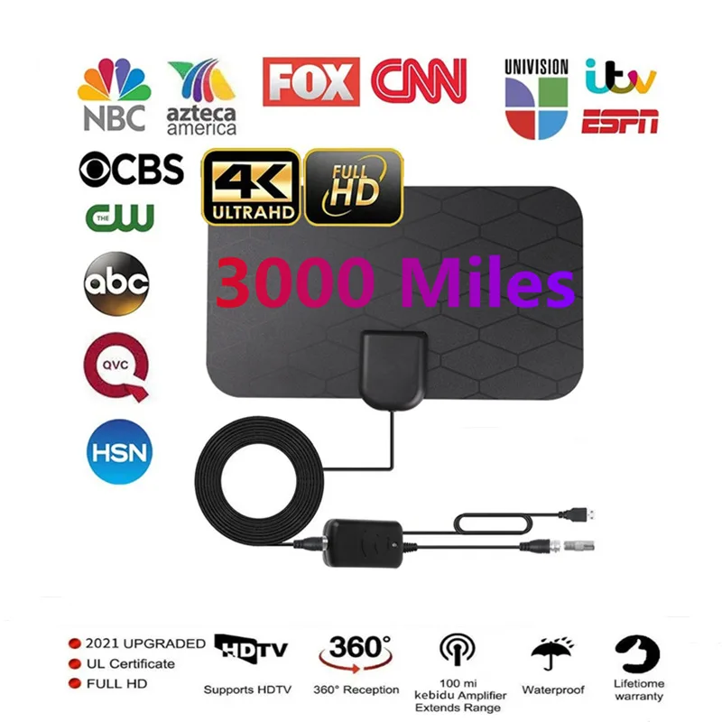 Antena de TV digital de 3000 millas 4K para interiores con amplificador Booster 1080P aéreo para antena de coche RV Travel