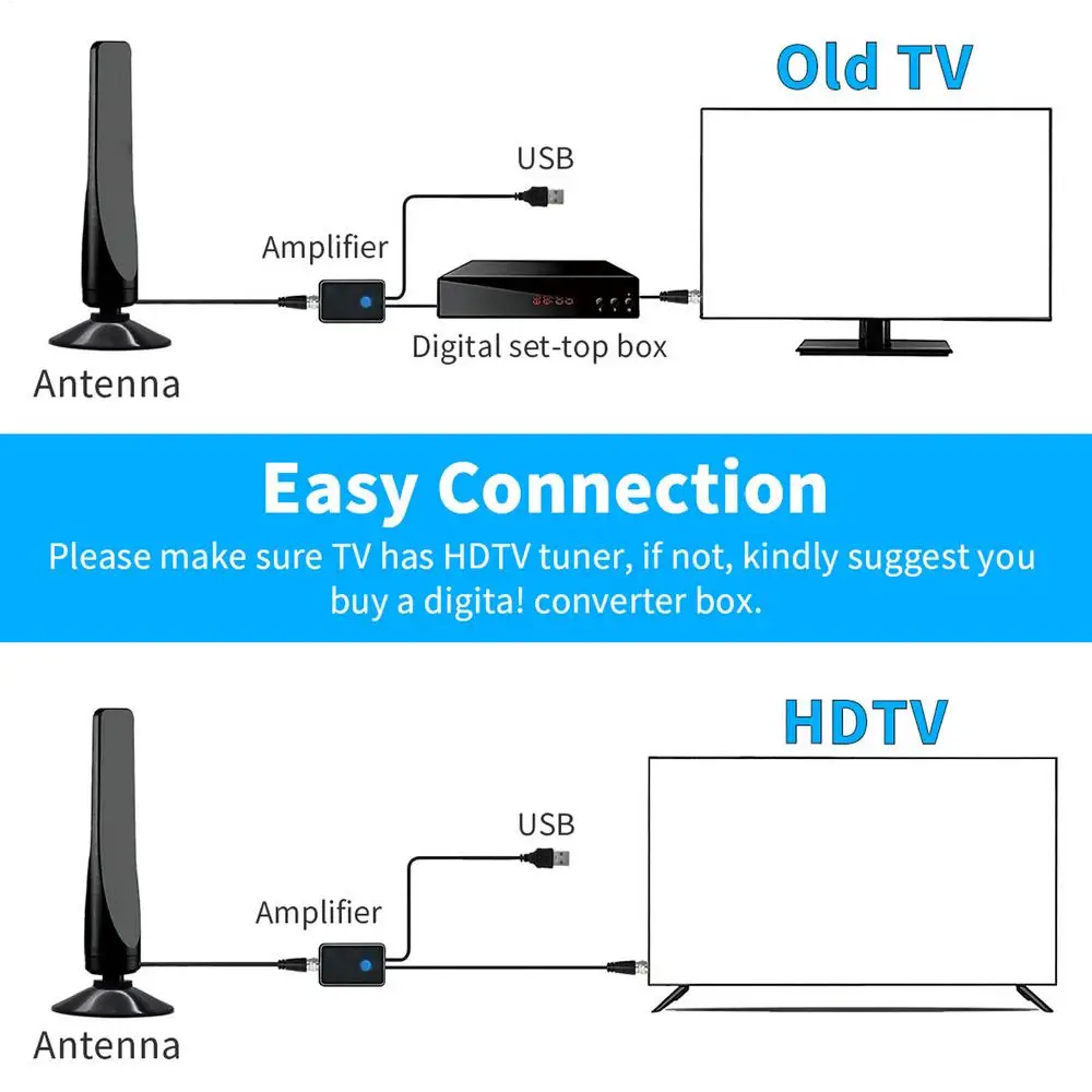 1.Fácil recepción: con escaneo automático de canales y memoria, esta antena de TV interior brinda fácil acceso a cientos de canales HDTV, incluidos ABC, CBS, NBC y más.No se requiere más búsqueda manual