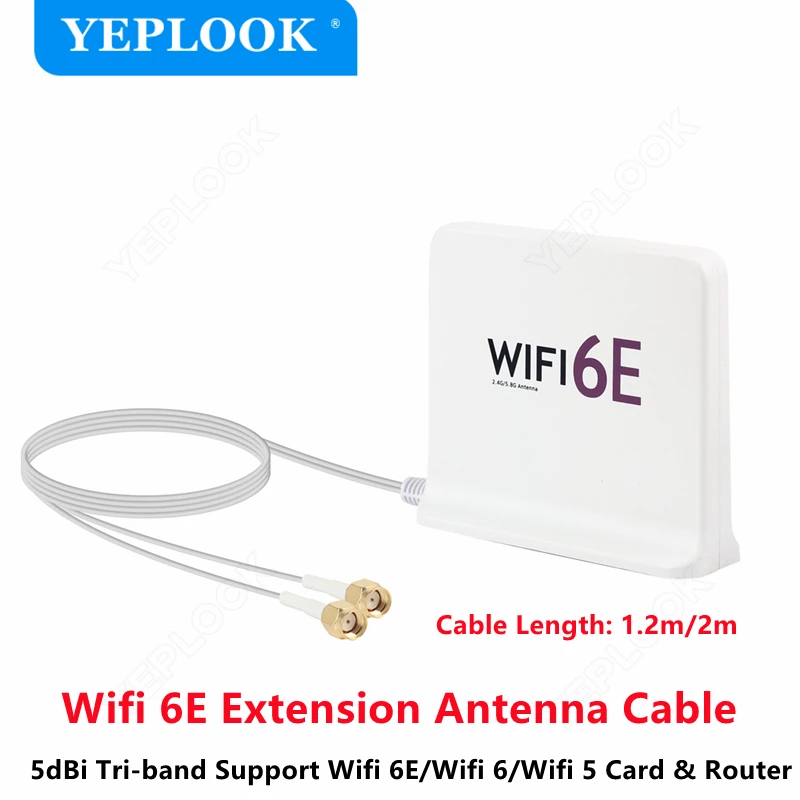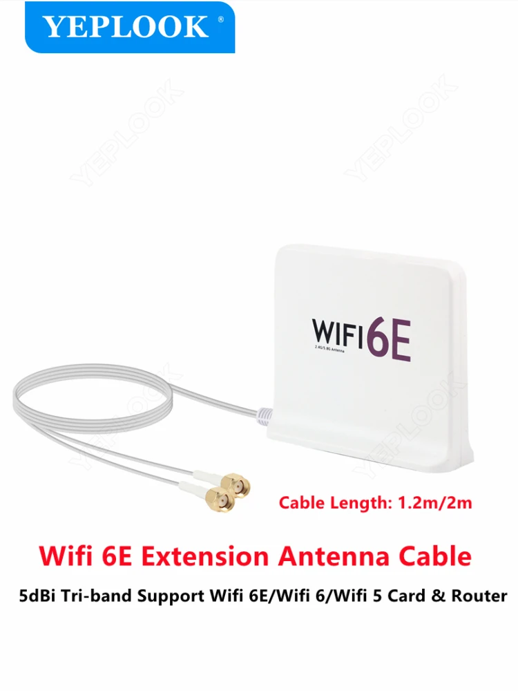 Comprar Antena Wifi 6E de alta ganancia, conector SMA de señal de tres bandas con Cable de extensión RG174 para tarjeta Wifi y enrutador, 1,2 metros/2 metros