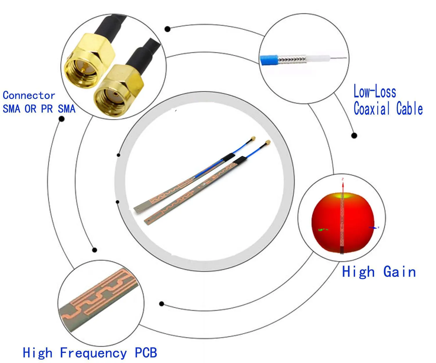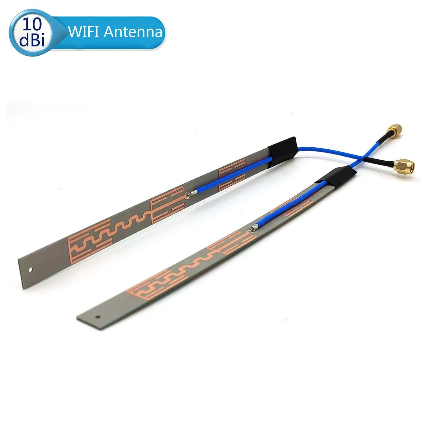 Antena WIFI de doble banda 10dBi 2,4 GHz 5,8 GHz El USO DE PCB de alta frecuencia hace que la pérdida de energía sea mínima, la eficiencia de la antena puede alcanzar más del 90%. Puede usarlo para adaptador PCIE de red inalámbrica USB o transmisión de imagen de control remoto 2,4G 5,8G FPV o enrutador inalámbrico o IoT 。