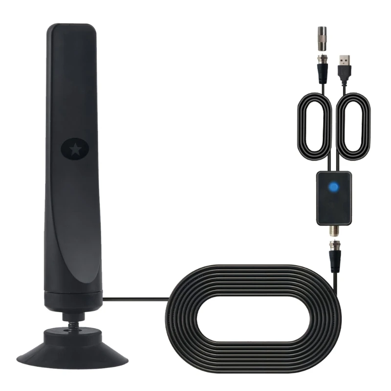 Estas antenas cuentan con rangos de 50 millas, amplificadores de señales desmontables y un cable coaxial de 9,84 pies de largo para una colocación óptima y una recepción superior de VHF/UHF.