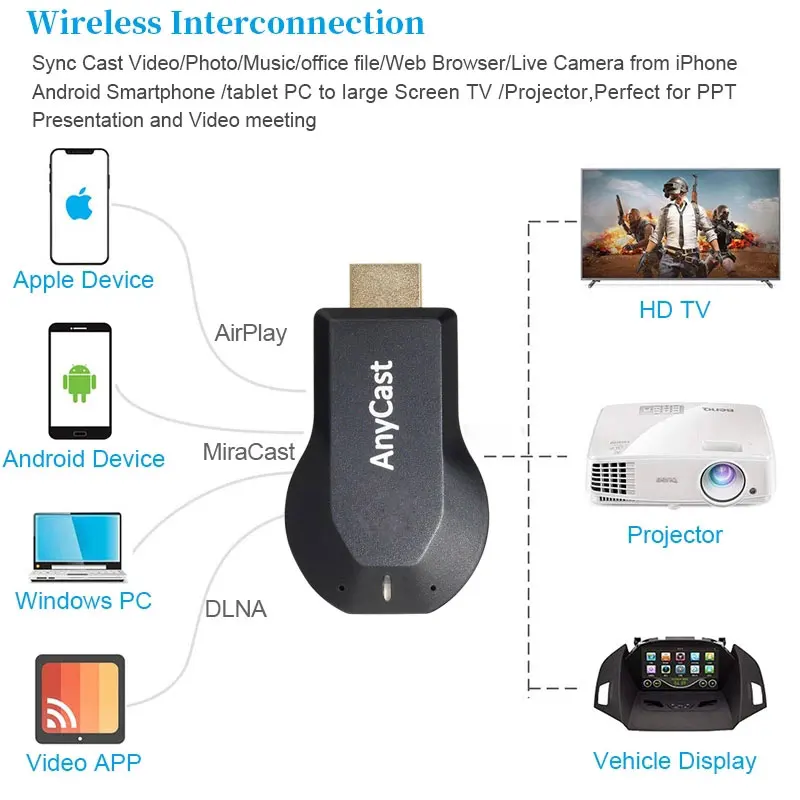 1,Anycast can be used for LCD/LED TV set ,Projector,Monitor with HDMI-Compatible input.