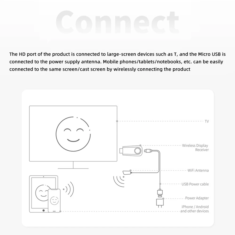 Método de conexión: el puerto compatible con HDMI del producto está conectado a dispositivos de pantalla grande como TV, y el USB está conectado a la antena de la fuente de alimentación