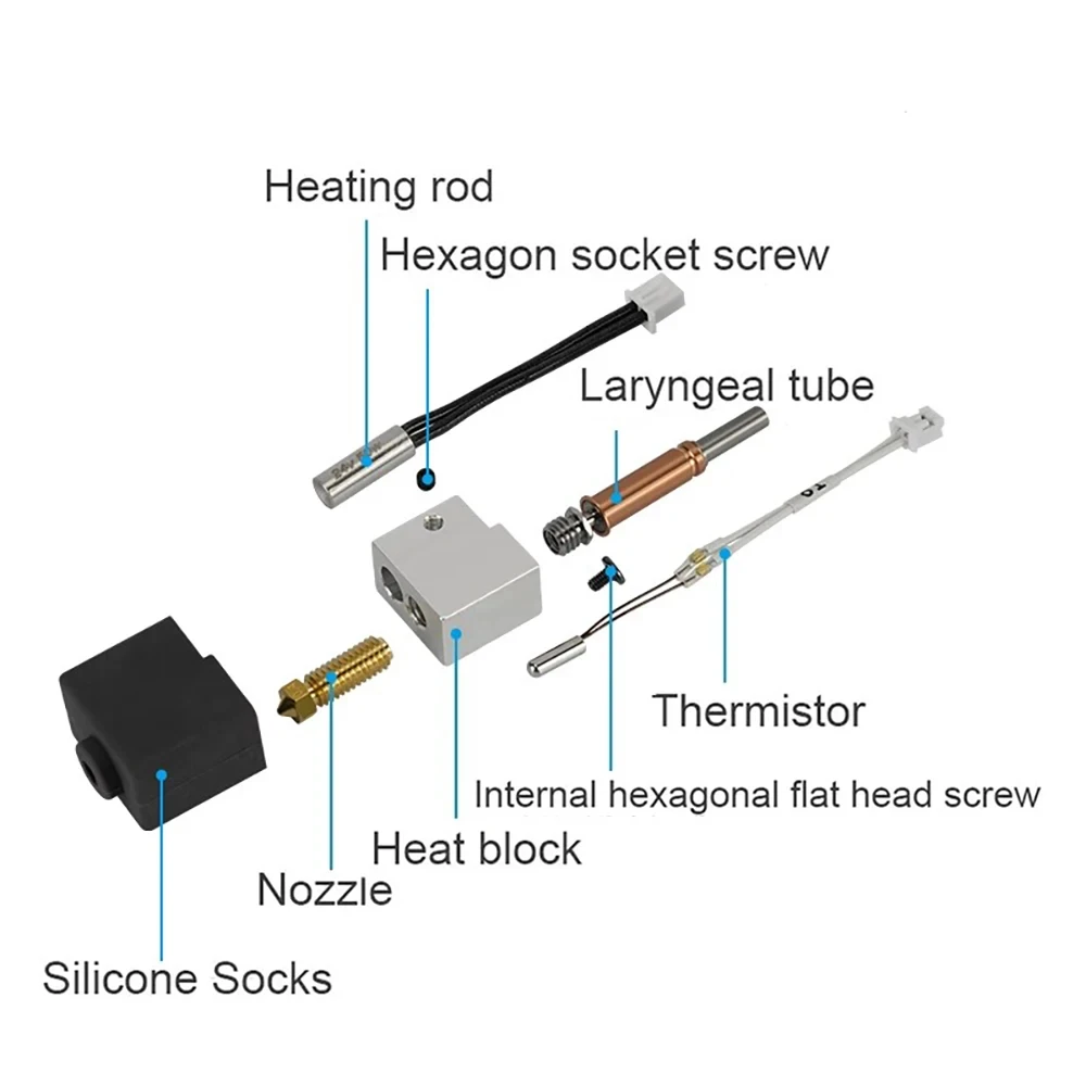 【Accesorios para impresora 3D de alta calidad】: Incluye piezas del kit de extremo caliente ensambladas: boquilla de latón de alta precisión, conectores, garganta, bloque calefactor, calentador de cartucho y termistor para una impresión más suave y mejores modelos impresos en 3D.