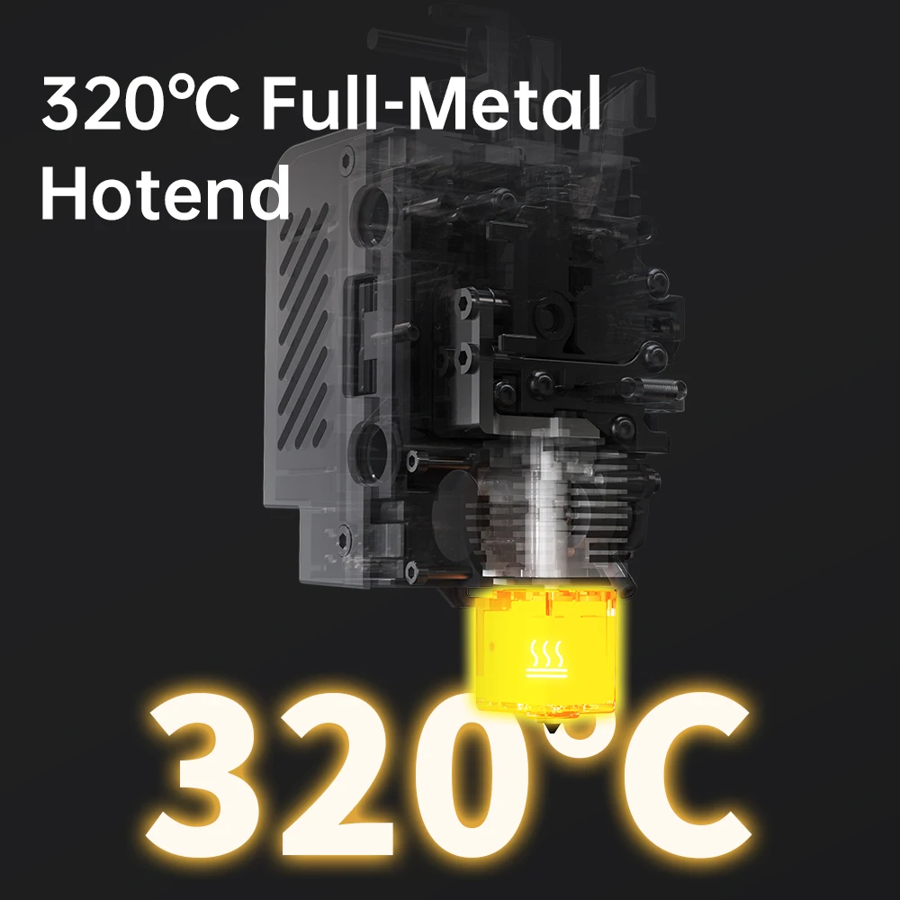 La impresora Kobra S1 cuenta con un hotend totalmente metálico capaz de alcanzar una temperatura máxima de 320°El foco C.lts puede mantener constantemente una temperatura máxima de 120°C, permitiendo la impresión sin esfuerzo de filamentos como ABS, ASA y otros materiales.