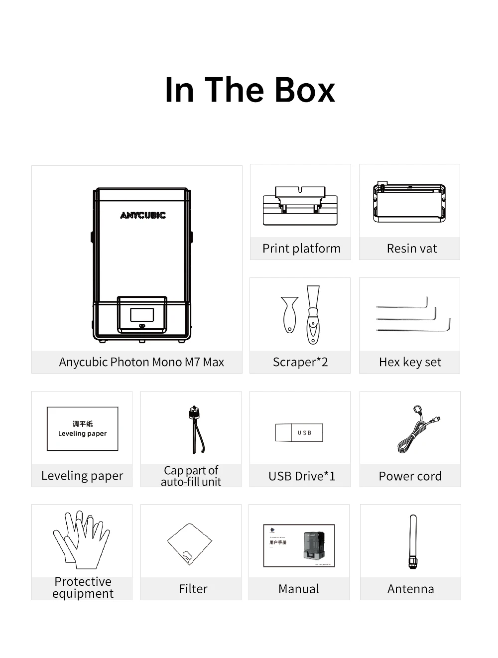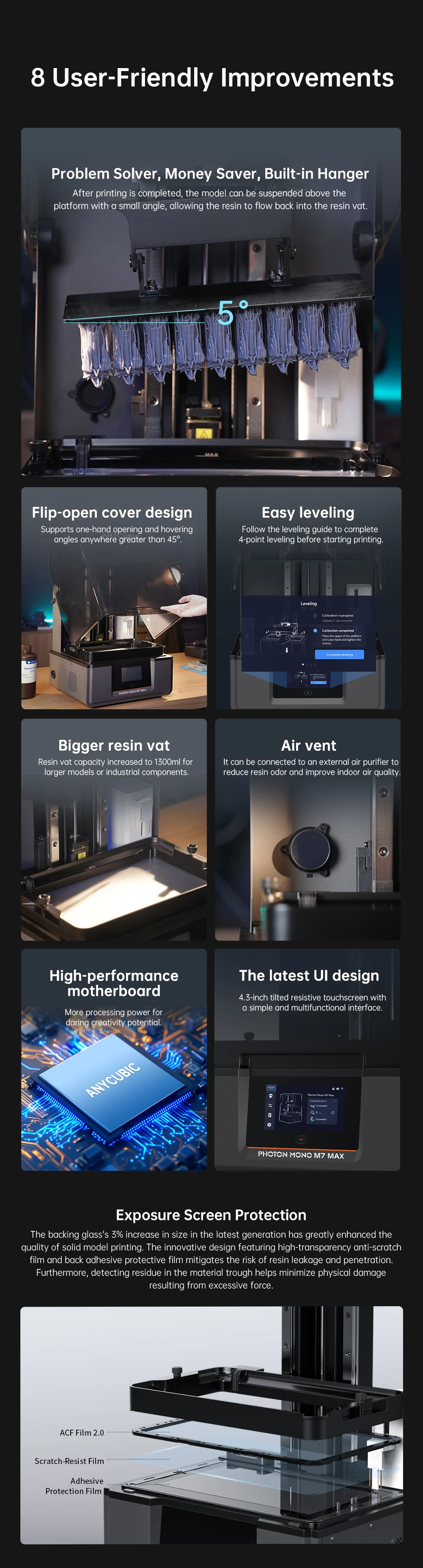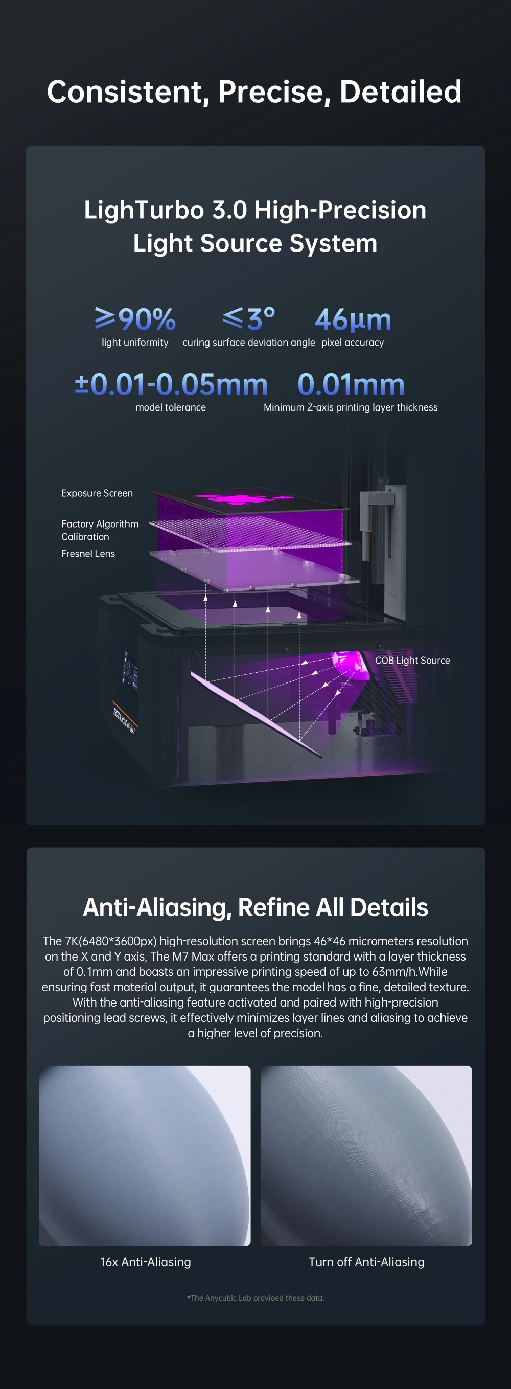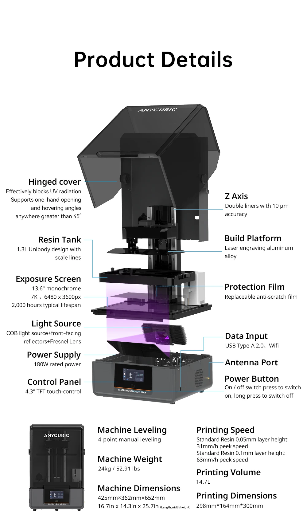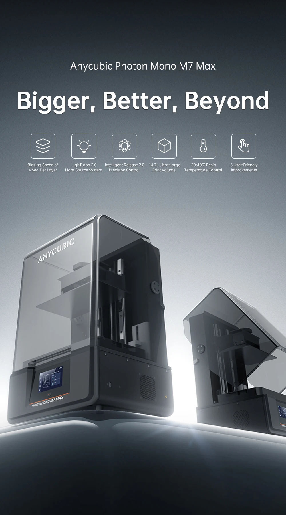 Comprar ANYCUBIC Photon Mono M7 Max + 5KG resina UV 7K Mono LCD impresora 3D 14.7L volumen de impresión ultragrande impresión 3D COB + fuente de luz
