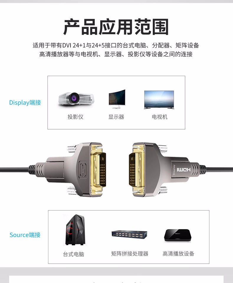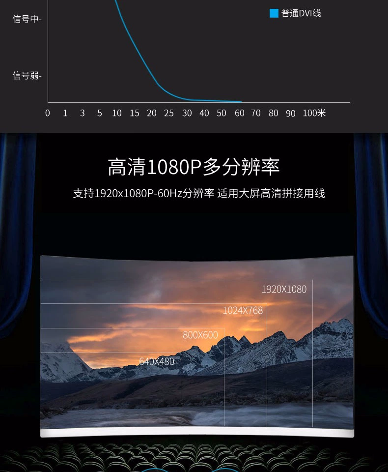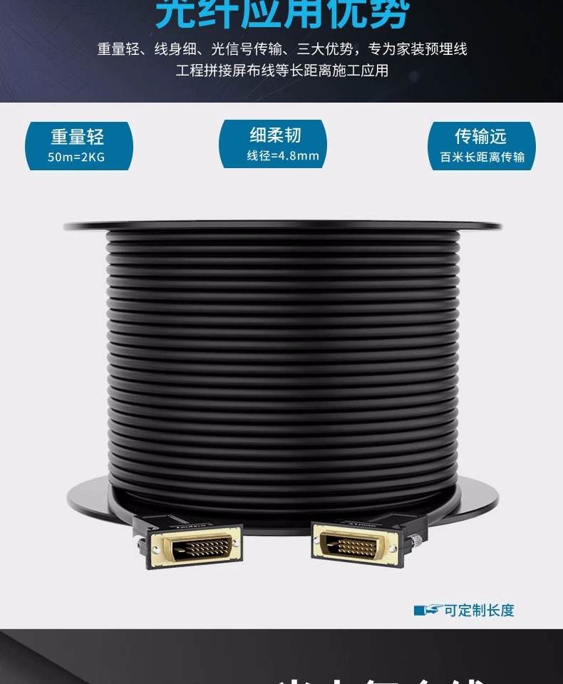 Cable de fibra óptica DVI AOC, ingeniería de larga distancia, 24 + 1, 100 metros, línea de conexión de pantalla de empalme de matriz de alta definición