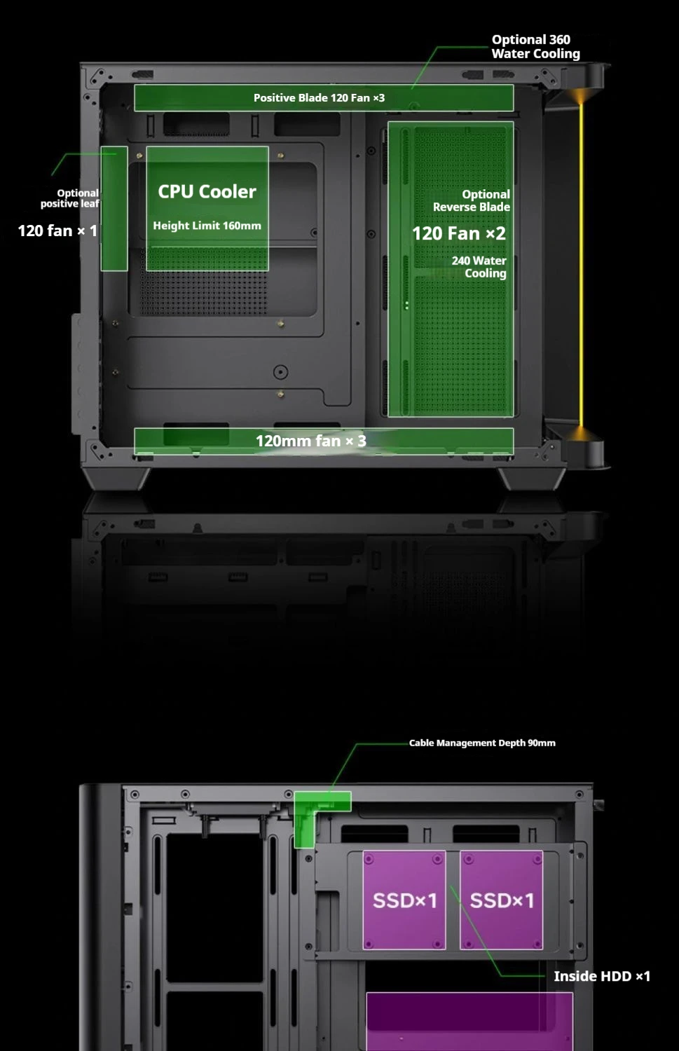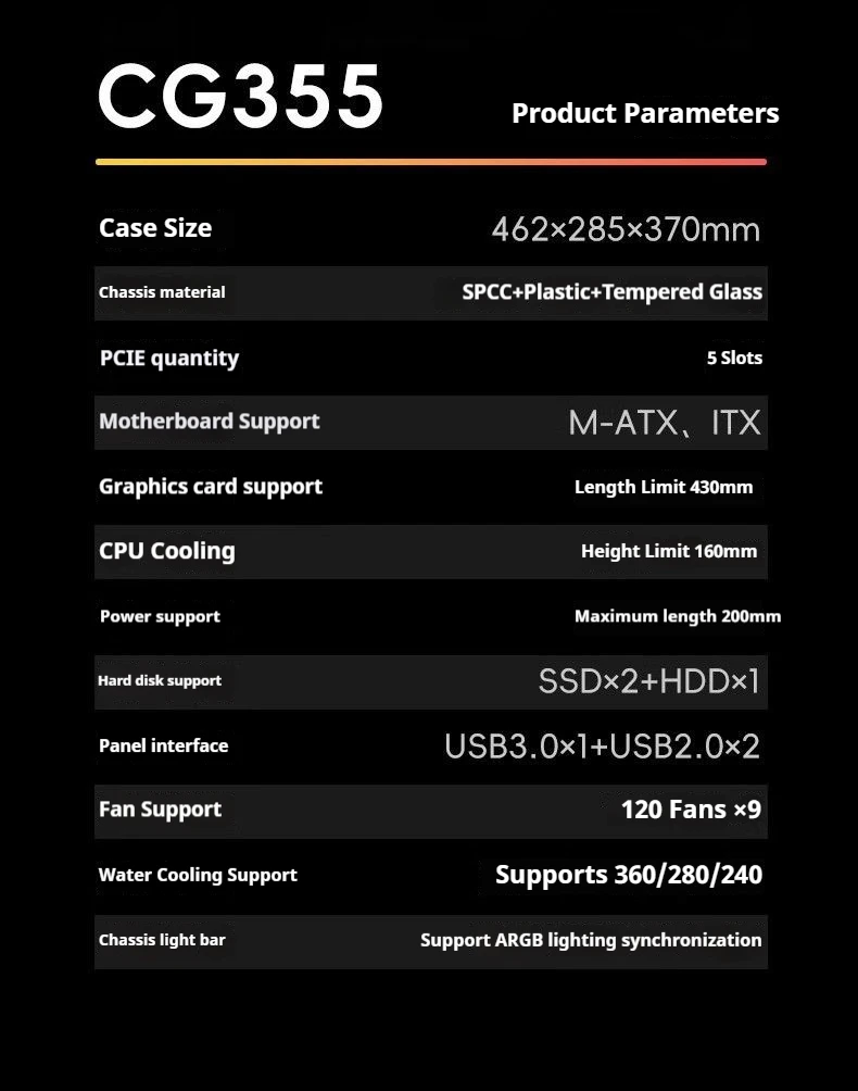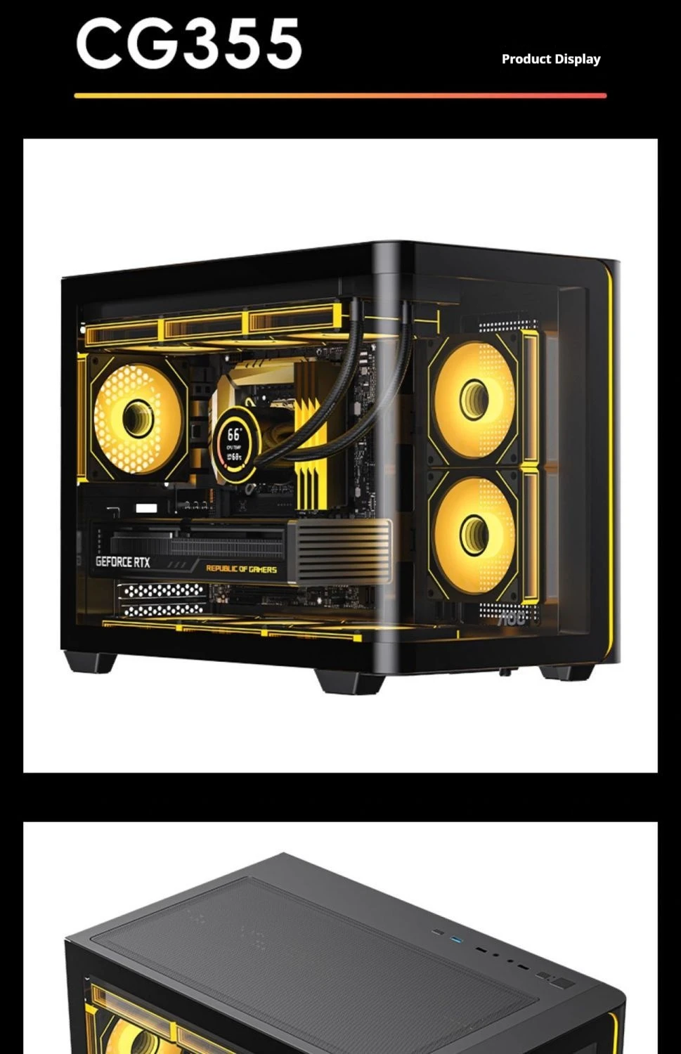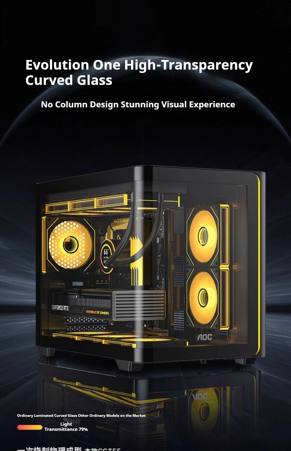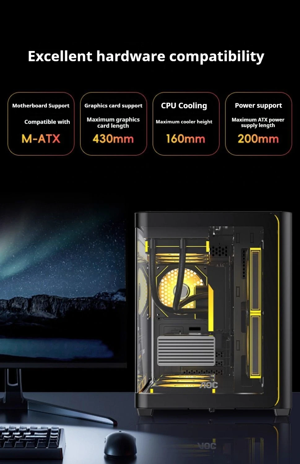 AOC CG355 MATX PC gamer case integrado curvado vista al mar habitación 360 refrigeración por agua caja de computadora de escritorio ARGB tira de luz USB