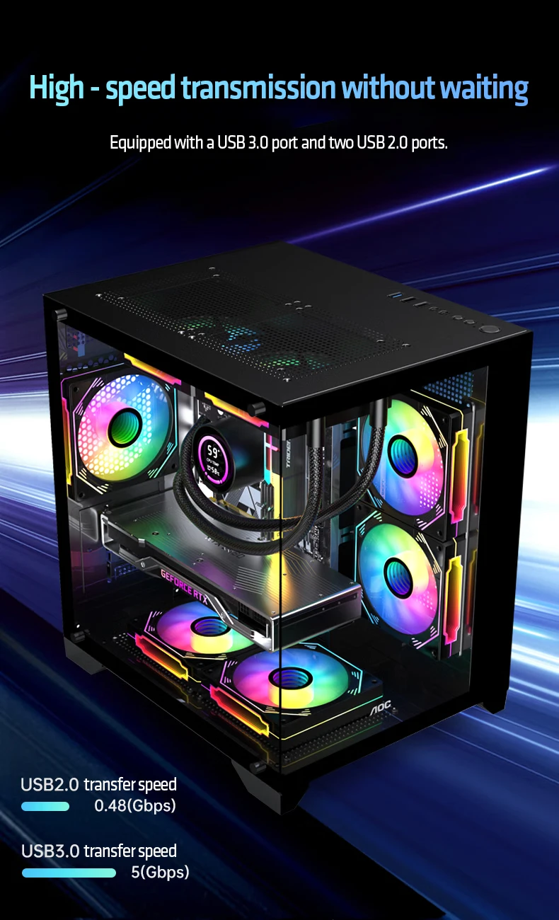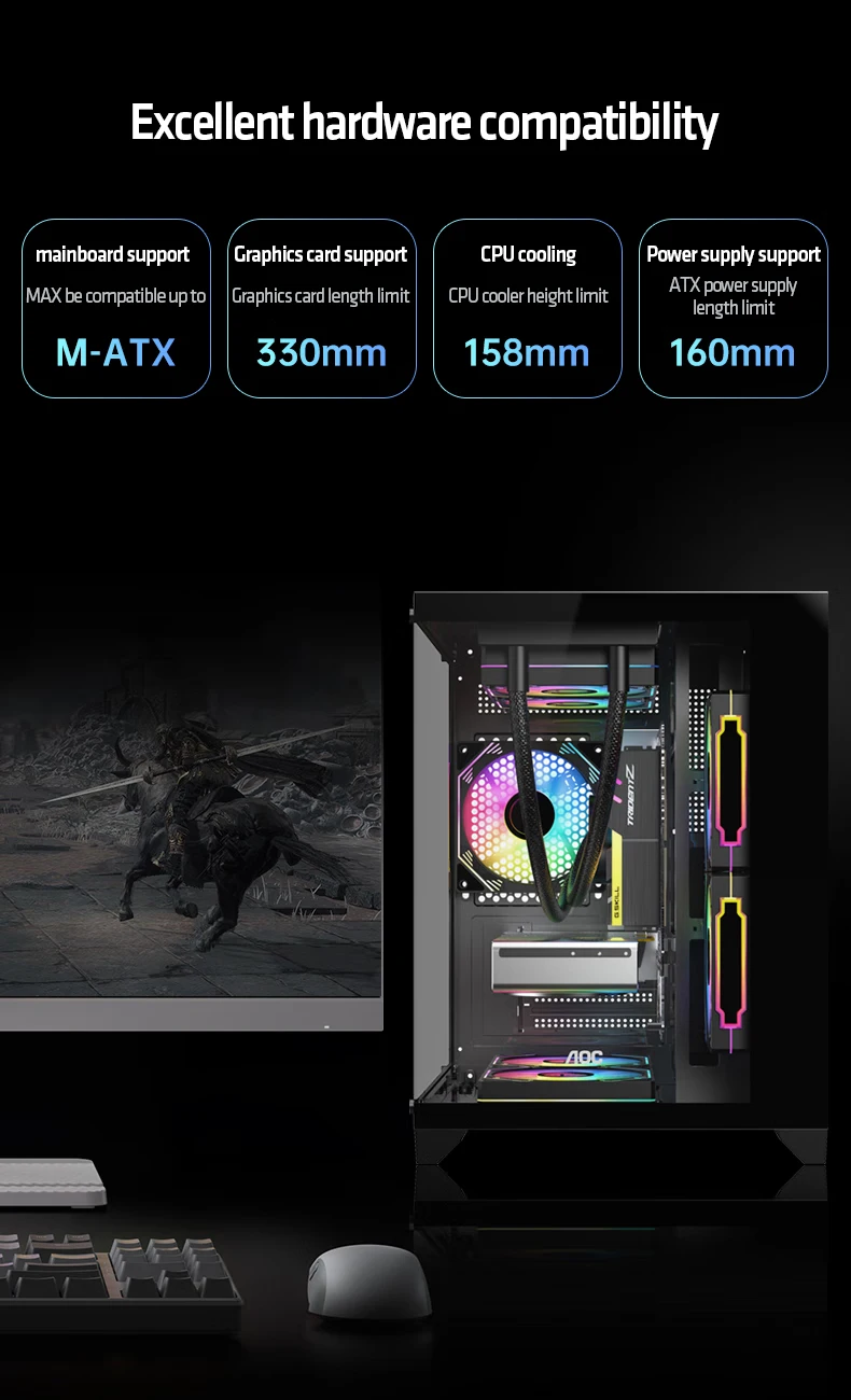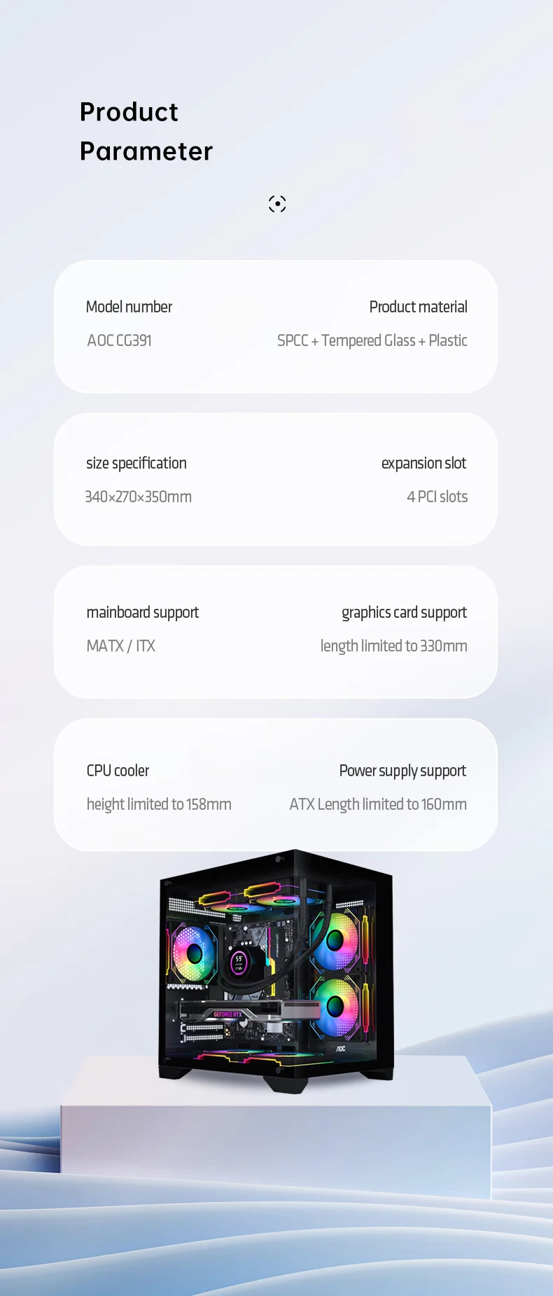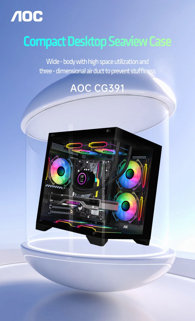 AOC CG391 PC Case MATX Gaming Desktop Case Compatible con 240 refrigeración por agua con 3 ventiladores Caja de computadora Sea View Room ле ーシ ーシ