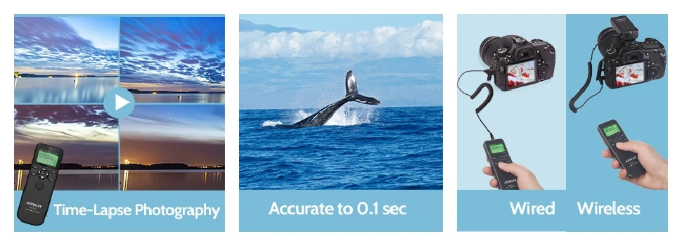 El disparador y temporizador remoto del obturador inalámbrico para cámaras Sony seleccionadas de AODELAN ofrece niveles mejorados de control de exposición con funcionalidad de temporizador, con disparos a intervalos, exposiciones largas, disparos continuos y un temporizador automático.