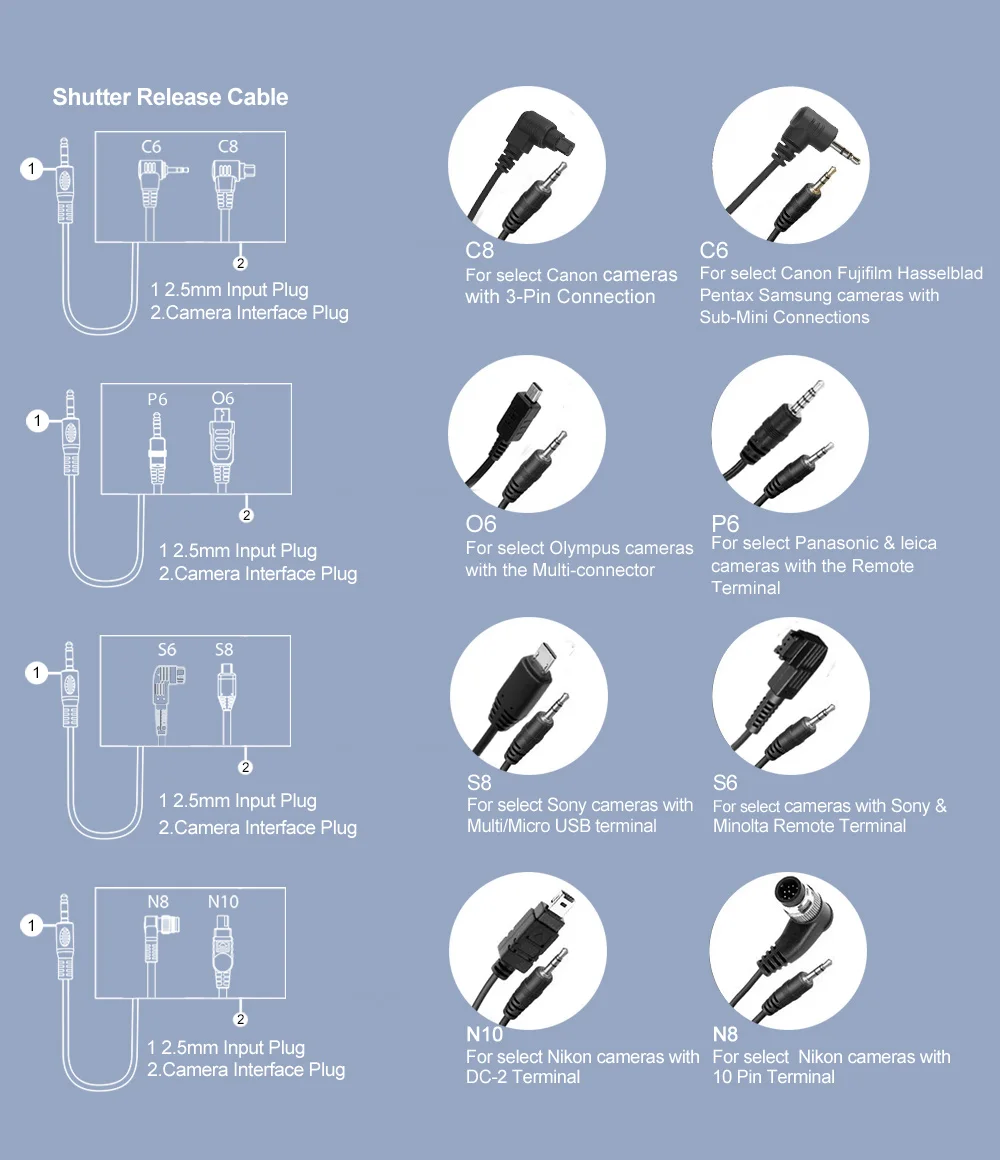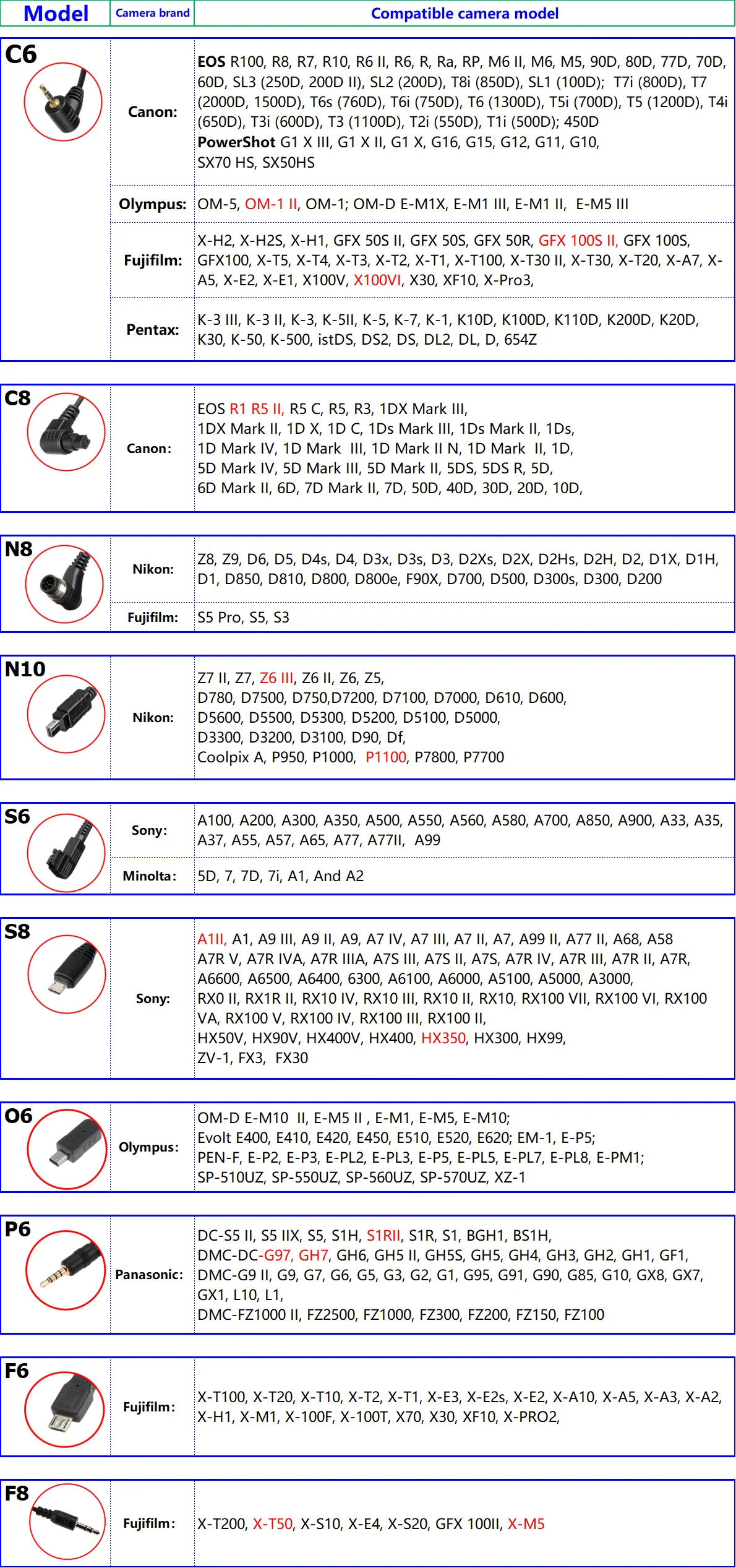 Note: Please choose the correct model (which color when you place the order) on the basis of your camera brand and model. If you don't know how to choose, feel free to contact our online customer service, thanks.
