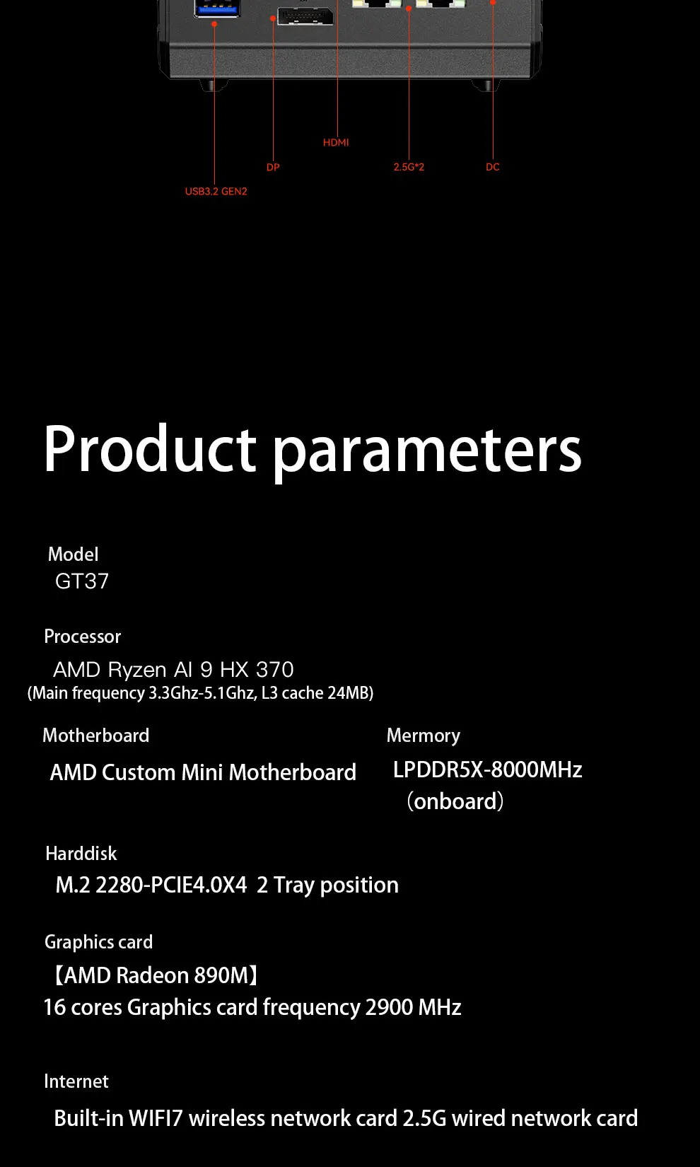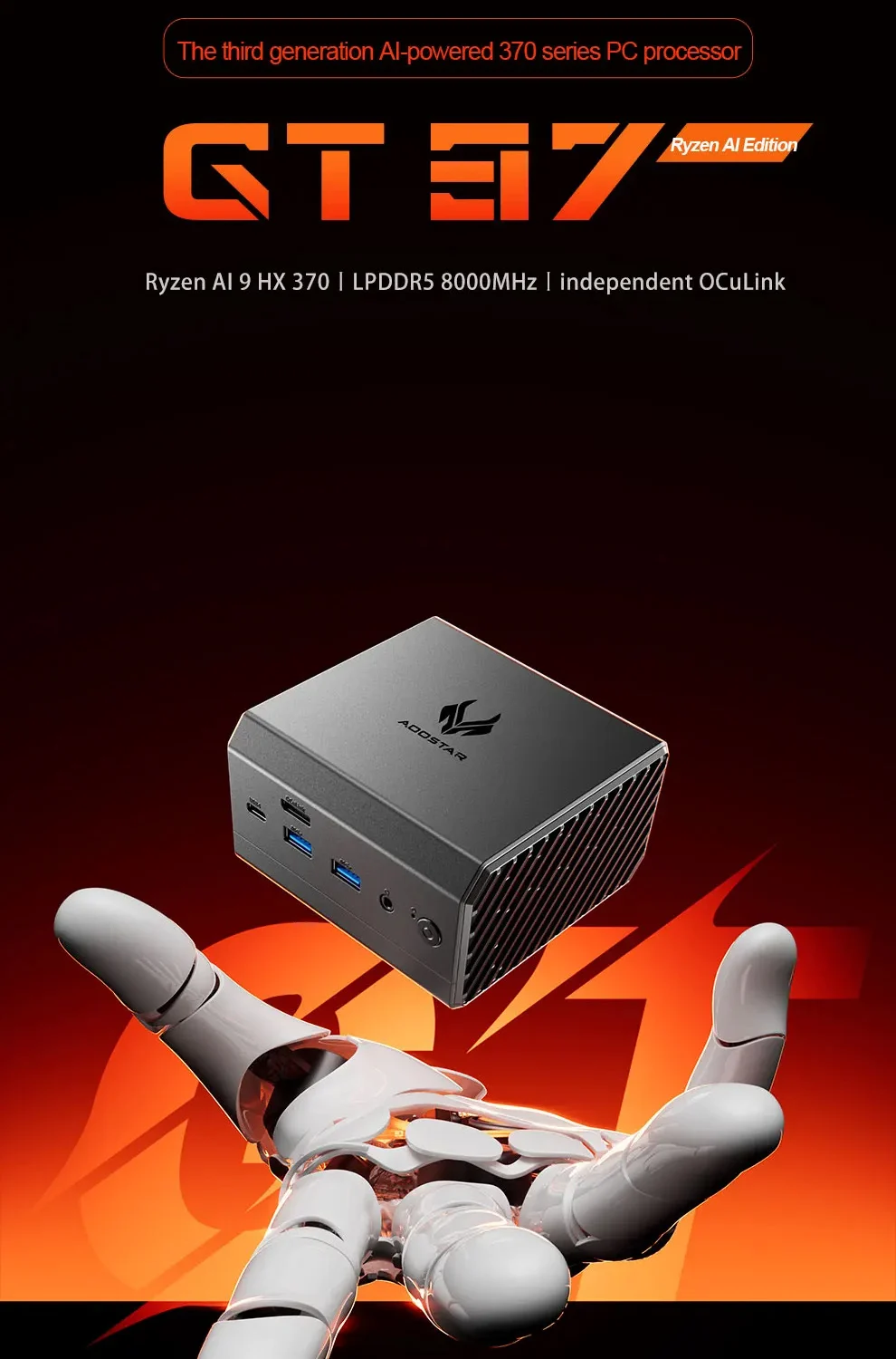 Comprar AOOSTAR GT37 ordenador Gamer AMD Ryzen 9 HX370 LPDDR5X 8000MHz WIFI7 4K HD BT 5,4 M.2 2280 PCIE4.0 SSD Mini PC de oficina HD DP 2 * LAN