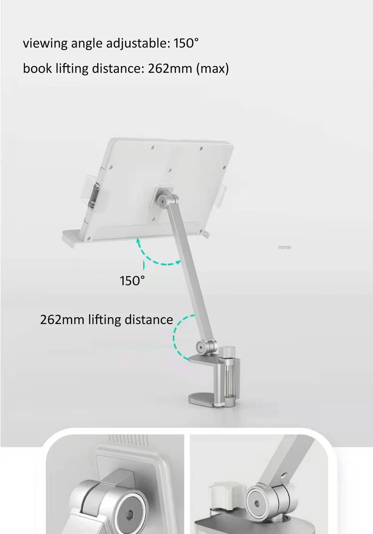 Comprar AP-7VC de aluminio A4-A6 para escritorio, abrazadera de montaje para lectura de libros, estante para documentos, tableta, puntuación de música, soporte para recetas bíblicos, plata, 270-417mm
