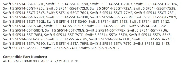 Comprar AP18C7M 15,4 V 55,9Wh batería de ordenador portátil de fábrica para Acer ConceptD 3 CN315-72 SF313-52 313-53 Swift 5 SF514-54GT baterías de SF514-54T