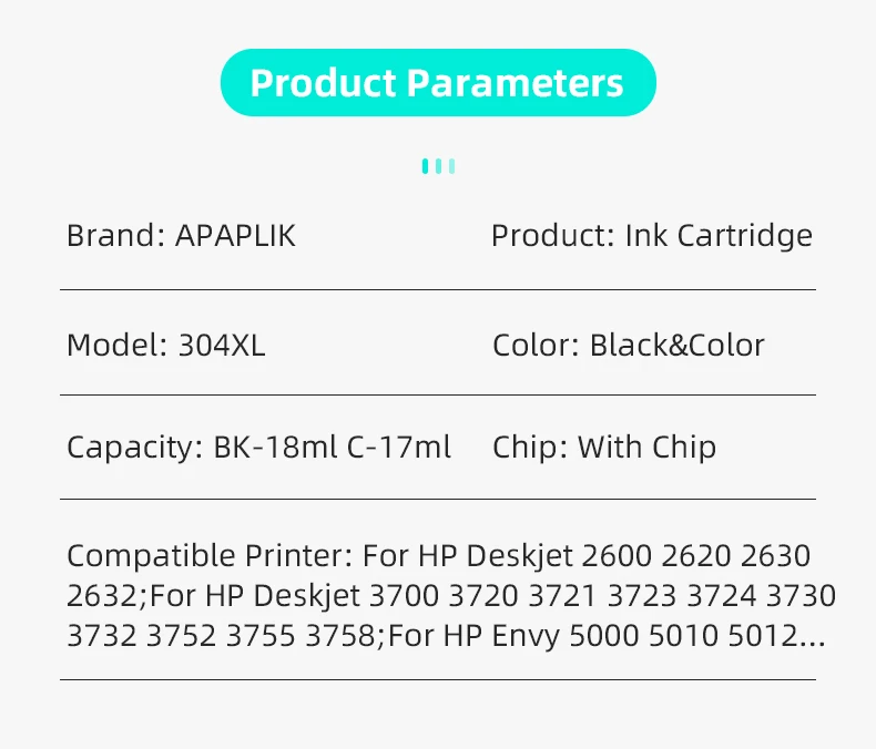 Cartucho de tinta APAPLIK 304 XL remanufacturado para HP304 para impresora HP Deskjet ENVY Officejet 2620 2630 3730 5020 5032