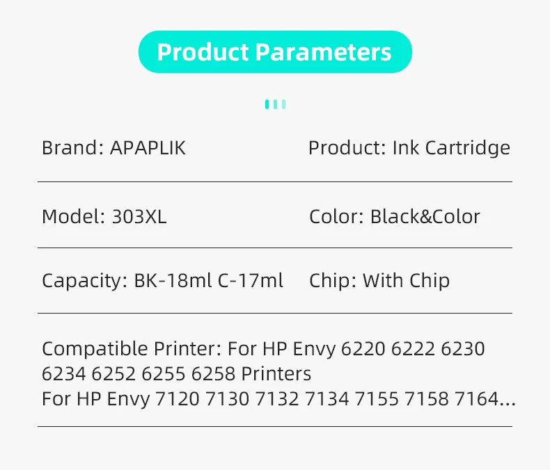 Cartucho de tinta remanufacturado APAPLIK 303XL funciona para HP 303 XL para impresora Envy 7120 7130 7132 7134 7155 7822 7830 7855 7858 7864