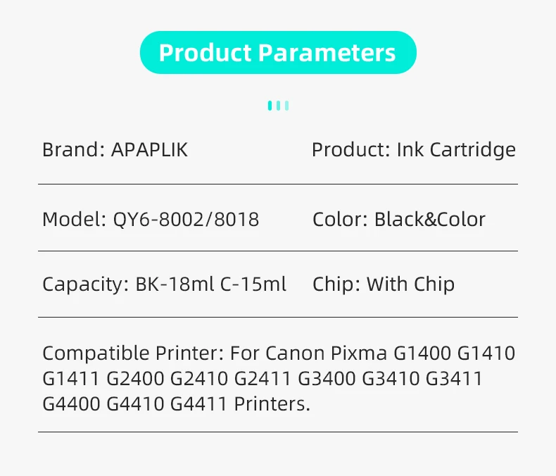 APAPLIK-Cartuchos de impresión Canon serie G, cartuchos de cabezal de impresión de color negro, Qy6 8006, GI 490, Canon, serie G, de color negro, para Canon,