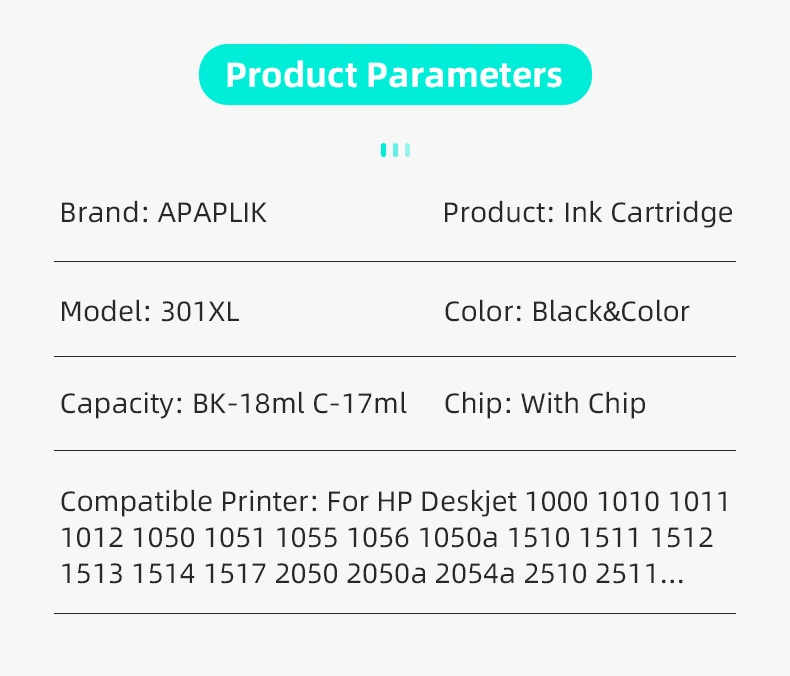 Cartuchos de tinta APAPLIK remanufacturados para HP 301 XL para HP301 301XL Deskjet 2050se 2054A 1050se 3050se 3050A 3052A Envy 5530