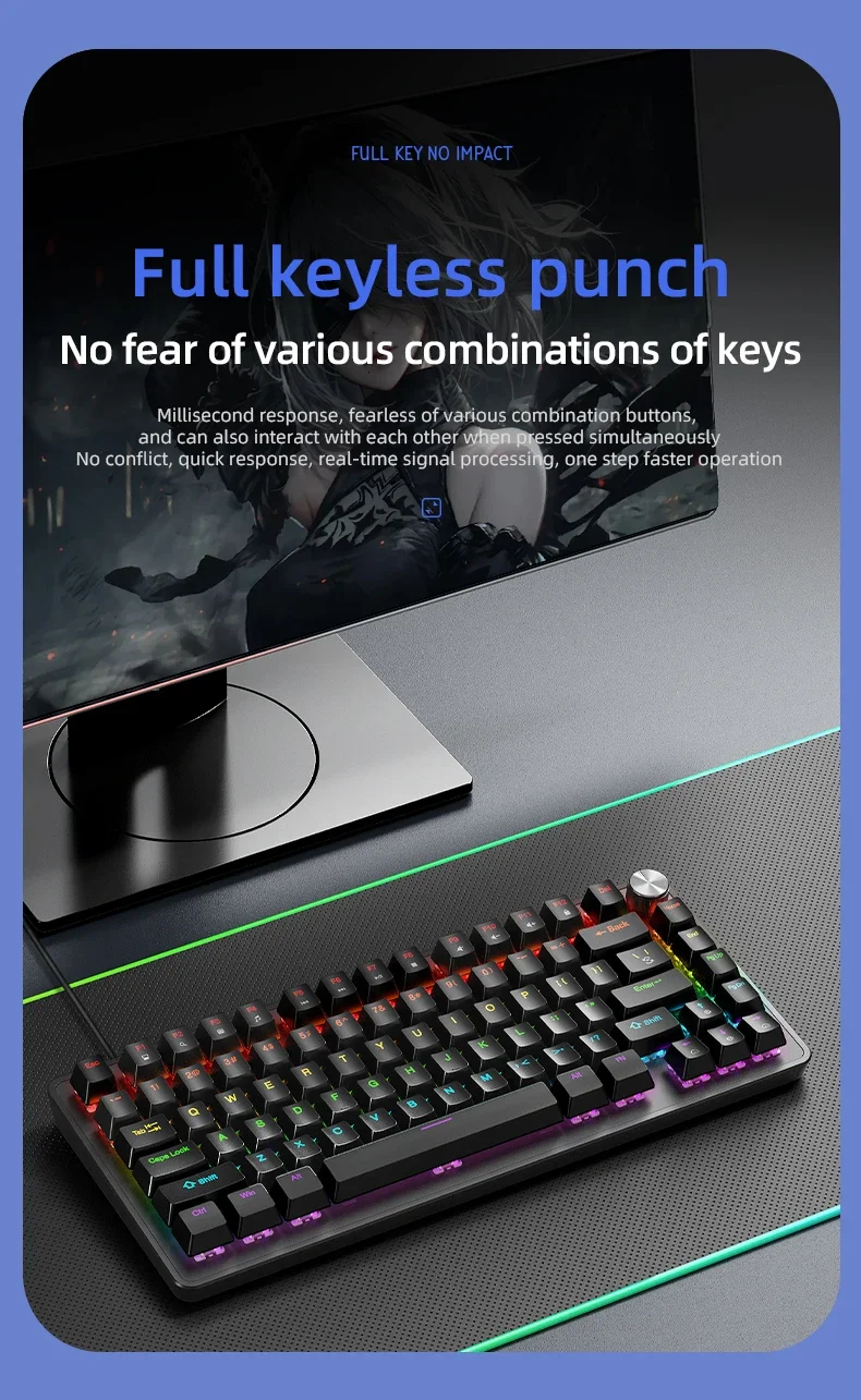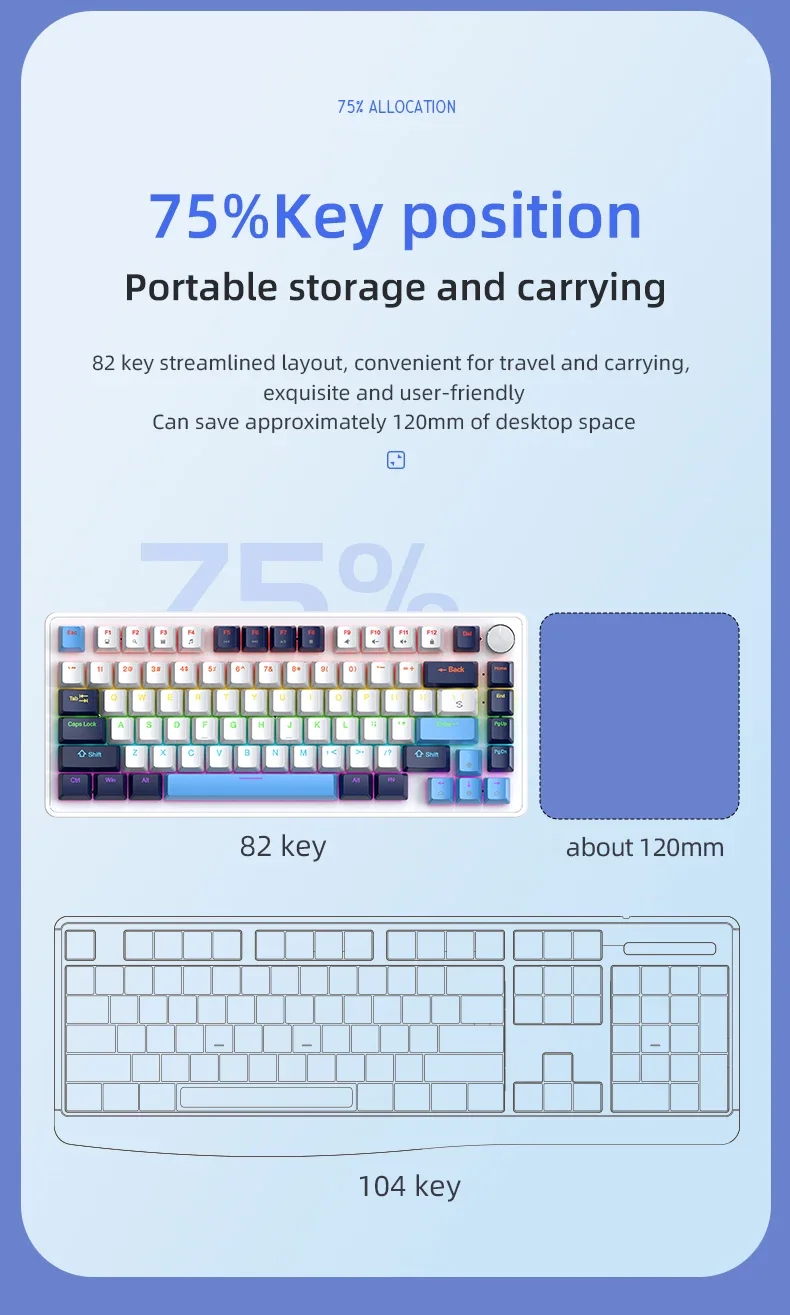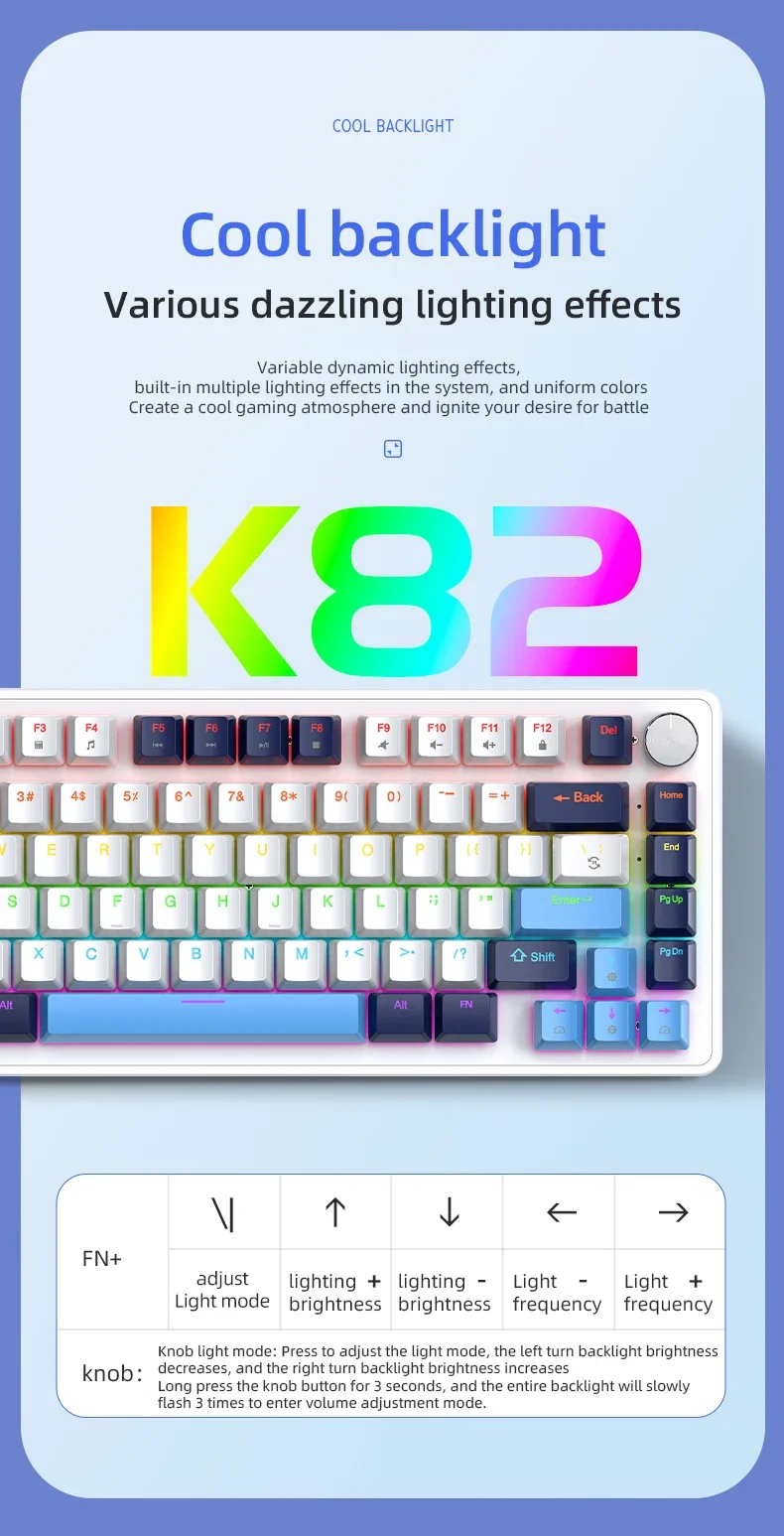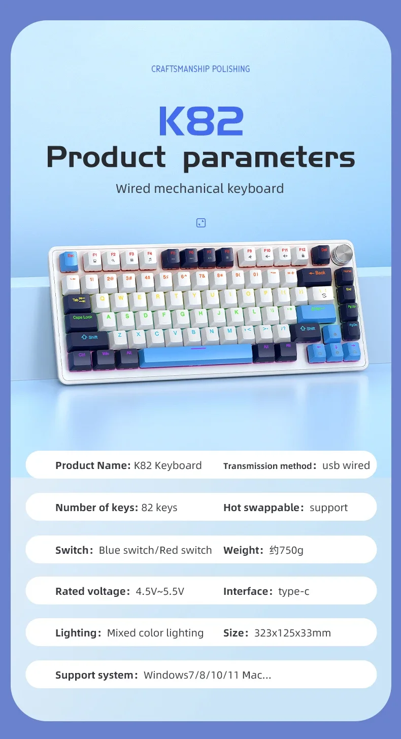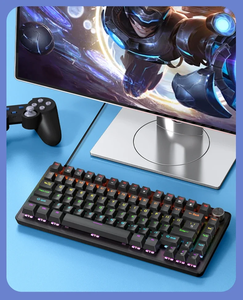 Comprar APAYDO K82 Teclado mecánico con cable y perilla multifuncional, diseño 75% de 82 teclas, tecla completa intercambiable en caliente, retroiluminación fresca, Windows y Mac
