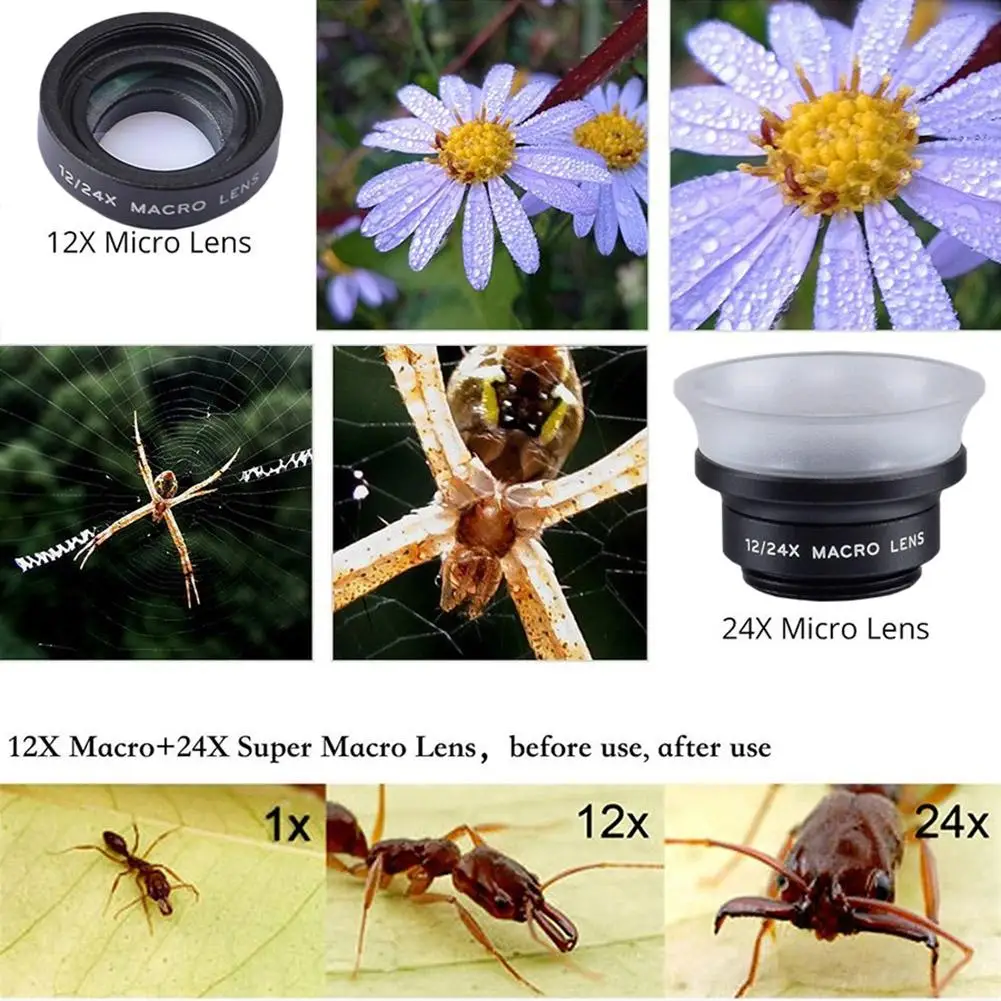 APEXEL-Lente macro para teléfono móvil, Universal, 2 en 1, + 24X 12X, profesional, 2 en 1