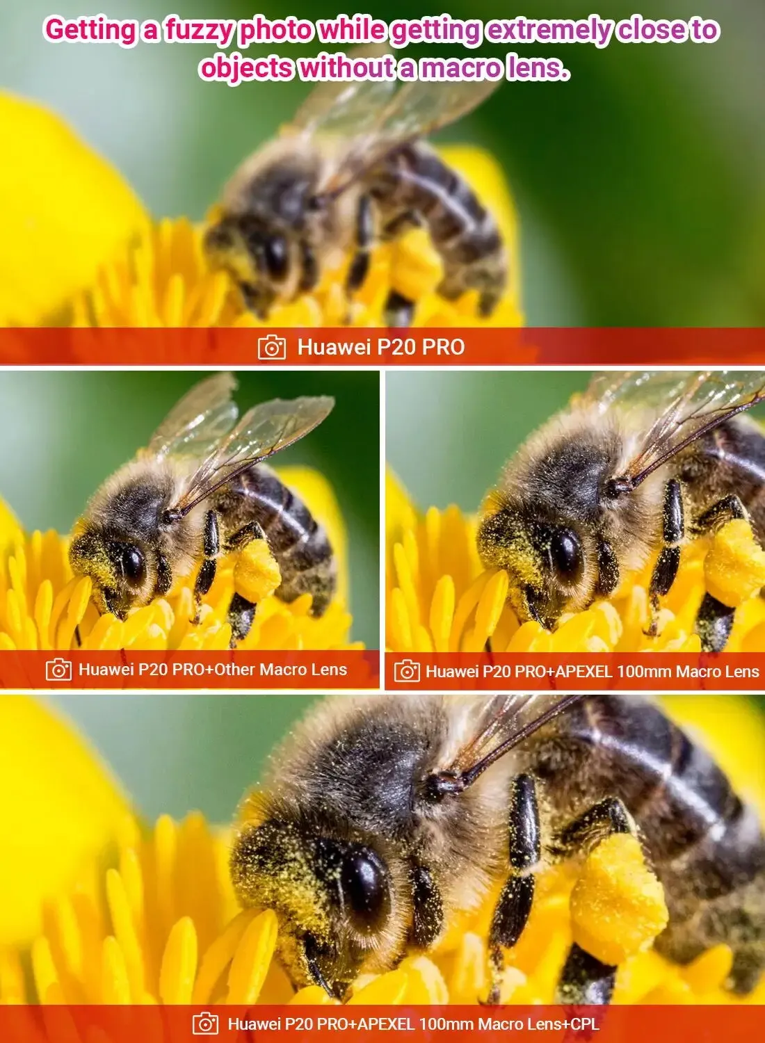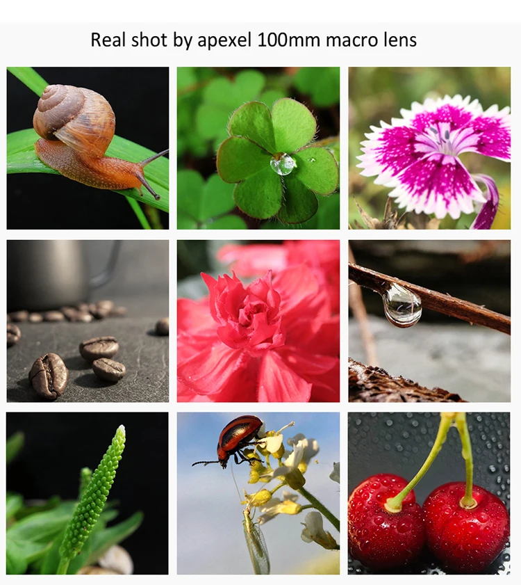 APEXEL recién upgrad 100mm lente macro con filtro CPL y clip universal, permite que su teléfono para obtener una buena imagen como SLR