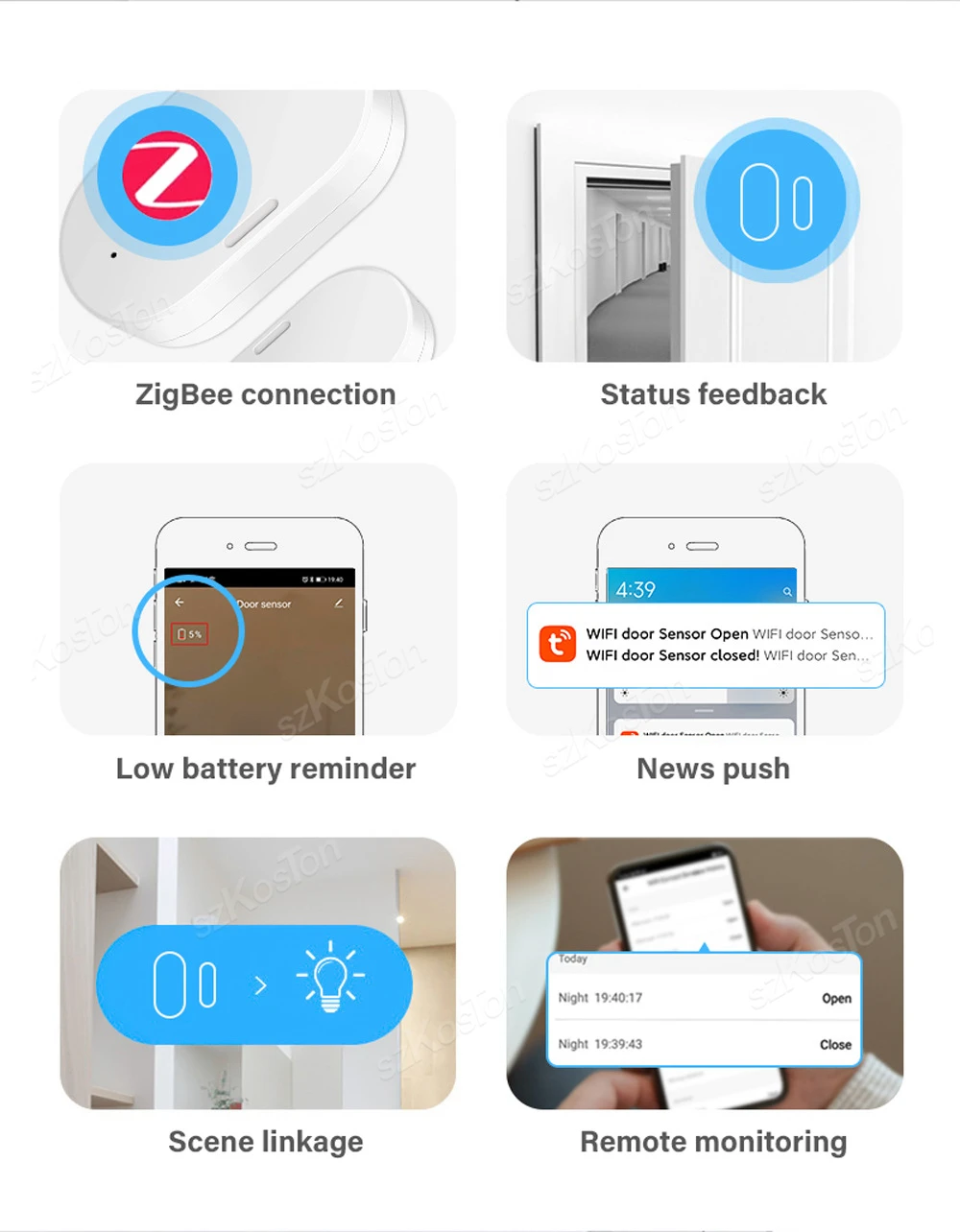 ✔ Instalación sencilla para una configuración más sencilla, la instalación con adhesivo 3M (incluido) le ahorra significativamente tiempo.Su aplicación también puede extenderse a áreas amplias como cajones, puertas de garaje, persianas, etc.Simplemente pégalo en cualquier lugar donde se conecten dos cosas y siempre estará seguro incluso si no sigas vigilándolo.Szkoston
