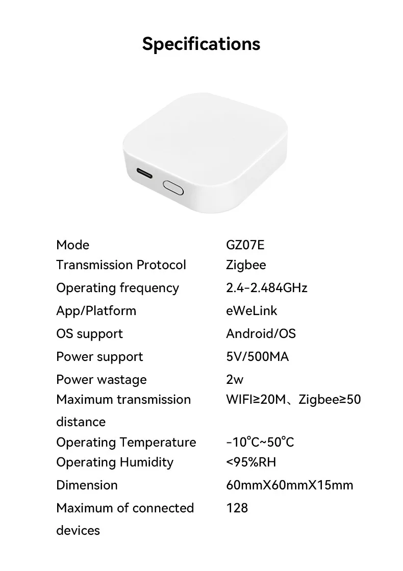 1.Imprescindible para todos los productos eWeLink o SON-OFF ZigBee: Este es un concentrador que se conecta a una variedad de productos inteligentes eWeLink ZigBee y es el puente, así como un centro de control para hogares inteligentes, que desempeña un papel insustituible para todos los eWeLink Productos ZigBee.